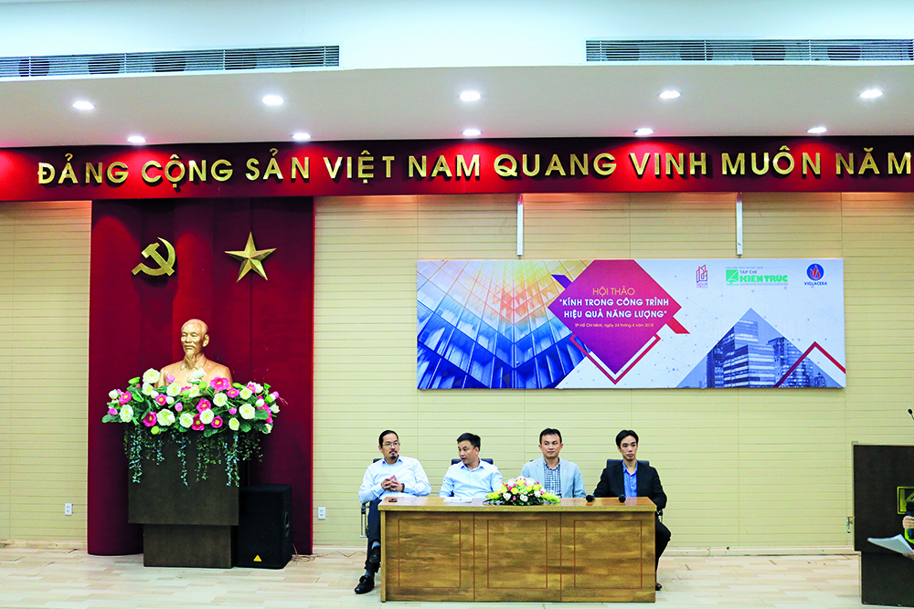 Với các nội dung tham luận: “Kính – Vật liệu trong thế giới phẳng của các công trình kiến trúc” (KTS Nguyễn Trường Lưu, Chủ tịch Hội KTS TPHCM), “Xu thế sử dụng kính trong kiến trúc” (ThS.KTS Trần Công Đức – Công ty Kiến trúc Von Gerkan, Marg và các cộng sự), “Công nghệ mới trong sử dụng kính tại Việt Nam” (Ông Huỳnh Nhật Tân, Phó Giám đốc Công ty Kính nổi Viglacera), “Sử dụng kính trong thiết kế công trình xanh” (ThS.KTS Nguyễn Trung Kiên, Giám đốc công ty Vilandco), các diễn giả đã trao đổi kinh nghiệm thiết kế và sử dụng kính trong thiết kế các công trình theo xu hướng kiến trúc xanh tại Việt Nam. Phần thảo luận đã diễn ra sôi nổi với những câu hỏi thú vị về chất lượng, tiêu chuẩn vật liệu kính cũng như các phần mềm mô phỏng hiệu quả điện năng trong công trình xanh. Các đại biểu tham dự hội thảo khá thống nhất trong quan điểm: Kính có thể được sử dụng một cách linh hoạt, đáp ứng được nhu cầu của chủ đầu tư, tiêu chí của kiến trúc xanh và các ý tưởng của KTS.
