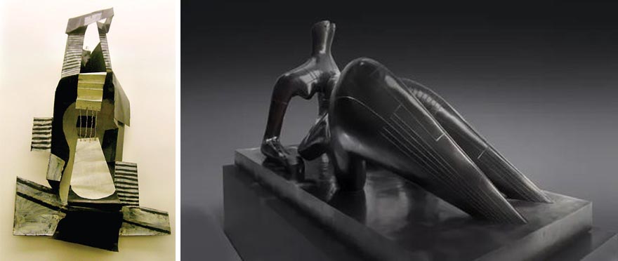 Trong điêu khắc cổ điển chưa có khái niệm không gian, quan niệm về khối là khối đặc, “có hình dáng xác định và duy nhất, có thể cân, đo được các đặc tính, hình dạng của nó và tồn tại trong không gian ba chiều”. Nhưng với điêu khắc hiện đại, không gian đã được phát hiện và khai thác để trở thành một yếu tố quan trọng trong tạo hình. Vào năm 1912, Picasso đã sáng tạo ra một tác phẩm làm từ bìa, gai, mảnh kim loại, sợi thép và gỗ có tên: “Cây đàn vĩ cầm và cái chai trên bàn”, đã mở ra một vấn đề lớn trong nghệ thuật điêu khắc trừu tượng, đó là điêu khắc có thể là không gian mà không phải là thể lượng.