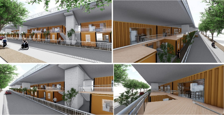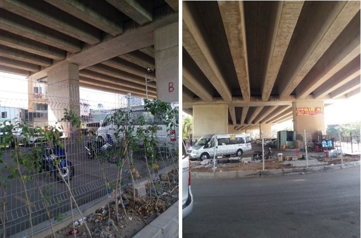Về phương pháp thực hiện, nhóm tác giả đã tìm hiểu thực trạng các không gian trống tại TP. HCM, như không gian dưới chân cầu vượt Phú Mỹ (Hình 1, 2), tuyến Metro, không gian trống trong công viên Lê Văn Tám, công viên Phú Lâm,… So sánh kiểm chứng với những công trình nhà ở cho người nghèo tại các nước trong khu vực. Qua đó, nhận thấy nhu cầu nhà ở cho người nghèo tại TP.HCM rất lớn và có xu hướng tăng lên từng năm do tình trạng dân nhập cư, quỹ đất xây dựng nhà ở luôn khó khăn, giá nhà đất quá cao so với thu nhập của người lao động nghèo, đặc biệt là người vô gia cư.