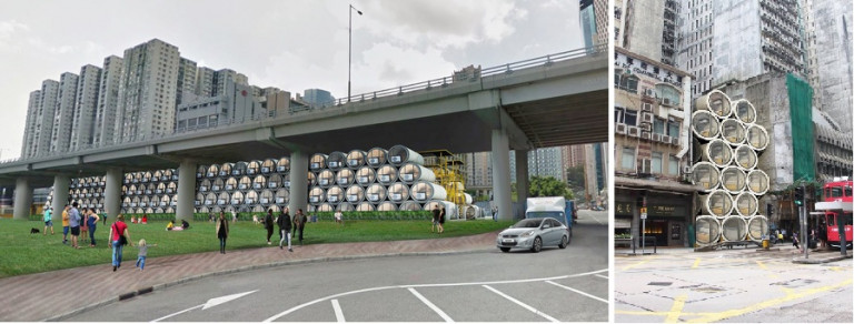 Tại HongKong, người lao động nghèo thường sinh hoạt trong các căn hộ chật hẹp, với tên gọi “nhà quan tài” hay “nhà chuồng cọp”. Trước nhu cầu thực tiễn đó, các kiến trúc sư và nhà đầu tư đã chú ý tới xu hướng “nhà ở vi mô toàn cầu” để tạo ra những giải pháp phù hợp nhu cầu của người dân nghèo. Một trong số đó là kiểu “nhà ống cống” tên là O-Pod. Chính quyền thành phố đã tận dụng những khoảng đất trống khắp HongKong, những ngôi nhà O-Pod có thể được đặt bất cứ đâu – từ dưới đường cao tốc đến những không gian trống trong công viên hay thậm chí những chiếc ống cống có thể xếp chồng lên không gian trống trên sân thượng một tòa nhà nhằm tiết kiệm diện tích. Mỗi chiếc ống cống được xếp chồng lên nhau tại các mảnh đất chưa được sử dụng, cung cấp chỗ ở tạm thời cho những người đang tìm kiếm nơi ở có mức giá phải chăng. Nhà ống cống gồm ống nước bê tông đường kính 2,5m, được trang bị các vật dụng thiết yếu bên trong, với diện tích sàn rất nhỏ chỉ 9,3m2. Bên trong nhà ống cống, kiến trúc sư thiết kế căn hộ mini với đầy đủ nội thất cần thiết, từ giường sofa gấp, kệ đựng đồ, phòng tắm với nhà vệ sinh, lò vi sóng và điều hòa nhiệt độ (Hình 4-7). Mỗi căn hộ có tải trọng khoảng 20 tấn, có giá khoảng 15.000 USD (tương đương 340 triệu đồng).
