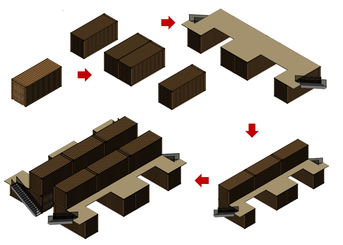Ý tưởng chính là tận dụng thùng container đã qua sử dụng để làm nhà ở cho người nghèo. Loại nhà ở tận dụng container đã xuất hiện nhiều trên thế giới, tuy nhiên ở Việt Nam vẫn chưa được quan tâm khai thác. Thùng container có thể làm nhà ở có kích thước cơ bản là: Dài 6,06 mét, rộng 2,44 mét, cao 2,59 mét. Với chiều cao và chiều rộng như vậy, có thể linh hoạt để tạo ra các không gian ở. Trên qui mô khu nhà ở, tổ hợp các thùng container để tạo nên các module nhà ở, trong đó mỗi module bao gồm: khu vực ngủ với 2 giường tầng, khu vực bếp và khu vực sinh hoạt đáp ứng nhu cầu sinh hoạt cho người sử dụng.