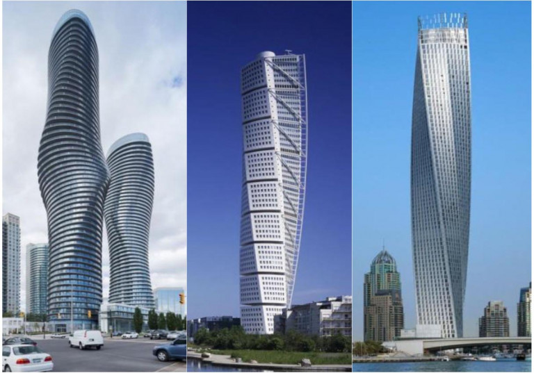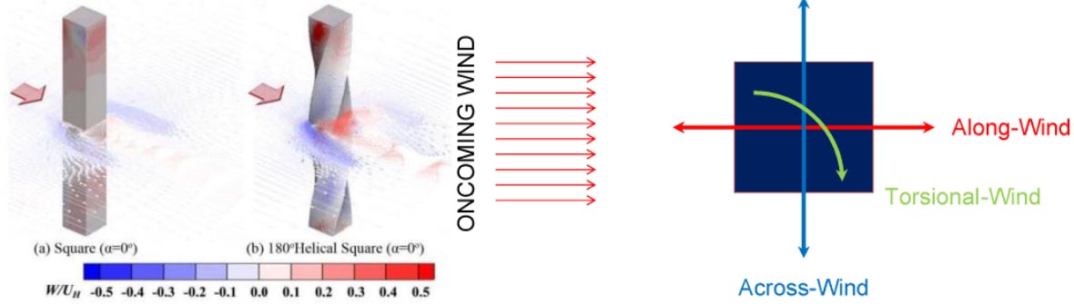 - Việc sử dụng hình dáng khí động học dạng xoắn cho tòa nhà là một cách hiệu quả để giảm ứng suất gió trên cấu trúc. Tuy nhiên theo độ xoắn và chiều cao tăng dần, độ cứng của tòa nhà lại giảm dần.