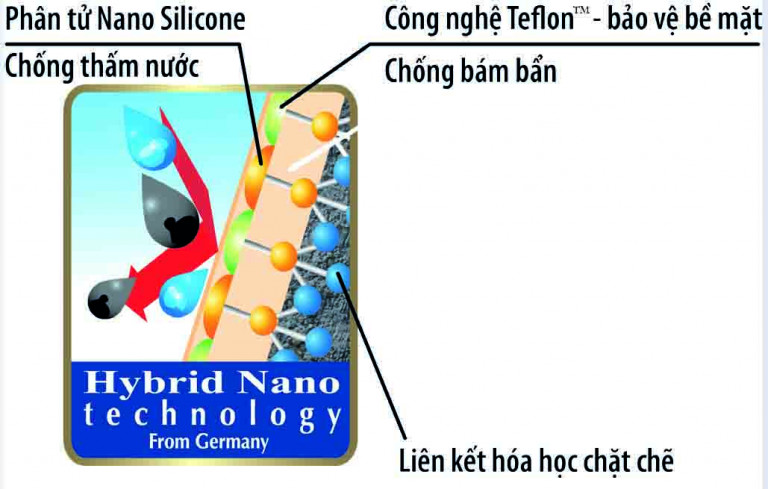 Hybrid Nano – công nghệ được biết đến như một phát minh lớn có thể thay đổi kích thước phân tử nhỏ đến 1 phần tỷ mét (Nanomet), nhằm tạo ra những vật liệu có tính năng siêu việt. Và khi được ứng dụng trong lĩnh vực sản xuất sơn cao cấp, người tiêu dùng không còn phải lo lắng với những sự cố đối với ngôi nhà của mình như thấm dột, bong tróc, nứt nẻ hay các vết loang lổ do vi khuẩn, vi nấm gây ra. Việc áp dụng công nghệ Nano được xem là lời giải đáp hiệu quả cho bài toán như chống thấm, chống bám bẩn, chống nóng và giữ được màu sắc bền lâu cho ngôi nhà. Chính sự tương tác giữa những phân tử Nano Silicon mang lại khả năng chống thấm tốt cho bề mặt sơn phủ, kết dính toàn bộ bề mặt tạo thành một lớp ngăn nước liên tục và chắc chắn, không bị phồng rộp và bong tróc. Những phân tử này bền vững trong môi trường có độ ẩm cao như Việt Nam.