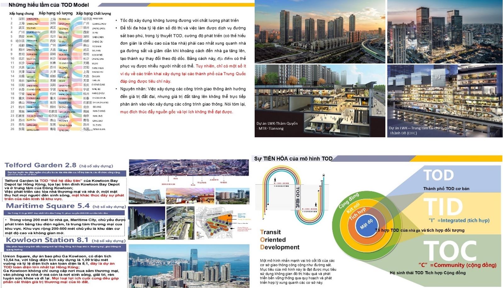Đầu năm 2025, Hà Nội và TP.HCM đã tổ chức Hội thảo quốc tế “Phát triển đô thị theo định hướng giao thông (TOD)”. Đáng chú ý trong đó bài “Chuyển đổi từ TOD (Transit Oriented Development – phát triển định hướng giao thông) sang TOC (cộng đồng định hướng giao thông – Transit Oriented Communities)” do Monique Suksmaningsih, Trưởng văn phòng Broadway Singapore Studio, trình bày, các chuyên gia đến từ Tập đoàn đường sắt 16 của Trung Quốc cũng chia sẻ những hạn chế trong phát triển đô thị theo mô hình TOD trước những thách thức mới của tiến trình đô thị hóa và họ đã có những mô hình phát triển mới.