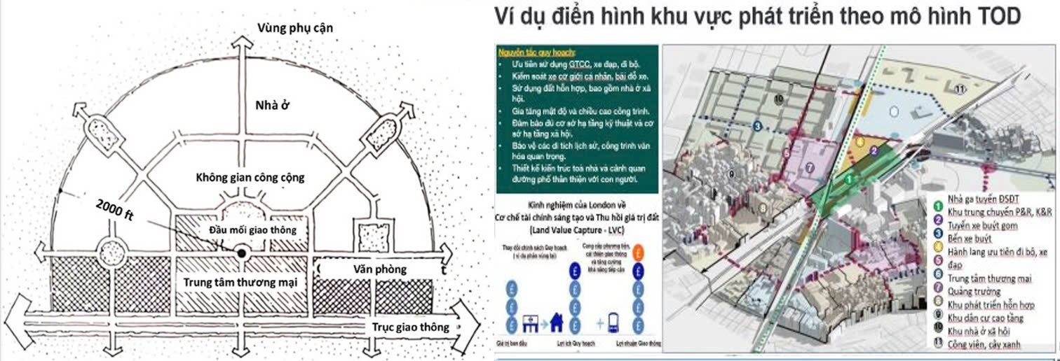 Tại các nước đang phát triển như Trung Quốc hay Ấn Độ, mật độ xây dựng luôn là một bài toán hóc búa để phát triển TOD do quỹ đất công không nhiều. Tái điều chỉnh đất cũng chưa có hành lang pháp lý như ở Nhật Bản, quốc gia đã ban hành nhiều luật quan trọng để tái phát triển đô thị (Luật tái điều chỉnh đất năm 1954, Luật tái phát triển đô thị năm 1969, Luật gắn kết phát triển đô thị với đường sắt năm 1989). Trong khi Trung Quốc sớm tập trung nghiên cứu, rút ra các bài học về phát triển TOD và tiến hành các thay đổi triệt để về quy hoạch, cơ chế, chính sách và gặt hái được nhiều thành công, đặc biệt với công thức M+P (Metro+Bất động sản). Các TP tại Ấn Độ lại đang hứng chịu hậu quả của việc xây dựng quá nhiều km đường sắt đô thị mà không hấp dẫn, thu hút được hành khách. Một số tuyến metro của Bangalore chỉ đạt 6% lượng hành khách dự báo theo thiết kế, ùn tắc giao thông và ô nhiễm không khí tiếp tục là bài toán nan giải ở thủ phủ công nghệ tin học này.