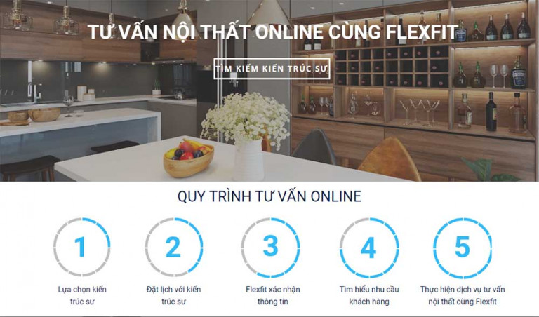 Để giải quyết bài toán kết nối với khách hàng trong giai đoạn giãn cách xã hội, Flexfit tiên phong ra mắt website tư vấn online, giúp khách hàng dễ dàng nhận tư vấn thiết kế nội thất ngay tại nhà. Theo đó, thông tin về các KTS cũng như các thiết kế tiêu biểu của họ được Flexfit đăng tải lên website. Người dùng có thể truy cập vào trang để tham khảo và chọn KTS phù hợp với yêu cầu của mình, sau đó đặt lịch và đợi nhận tư vấn.