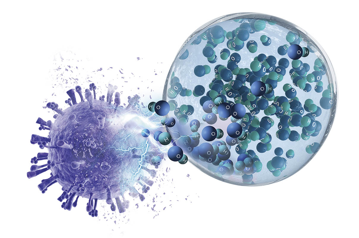 Vào năm 2012, Panasonic đã phối hợp với các viện nghiên cứu độc lập tiến hành thử nghiệm việc loại bỏ vi rút và xác nhận tính hiệu quả đối với từng loại trong số 4 nhóm vi rút được thử nghiệm dựa trên một số đặc điểm sinh học. Từ kết quả này, Panasonic tuyên bố rằng công nghệ “gốc hydroxyl bọc trong nước” được kỳ vọng có thể có tác dụng ức chế vi rút mới*3.