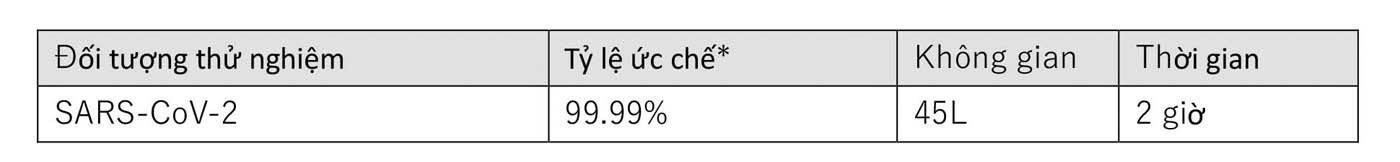 Lưu ý: Việc xác minh này được thực hiện mới mục đích tạo ra dữ liệu nghiên cứu cơ bản về tác động của nanoe™ X đối với vi rút corona mới trong điều kiện phòng thí nghiệm khác với điều kiện của không gian sống thông thường. Không dùng để đánh giá hiệu suất sản phẩm.