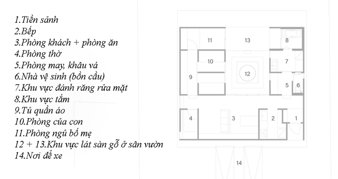 Các phòng và các khu vực sinh hoạt được bố trí cùng quay mặt ra sân, giúp các thành viên trong gia đình có nhiều cơ hội giao tiếp với nhau hơn.