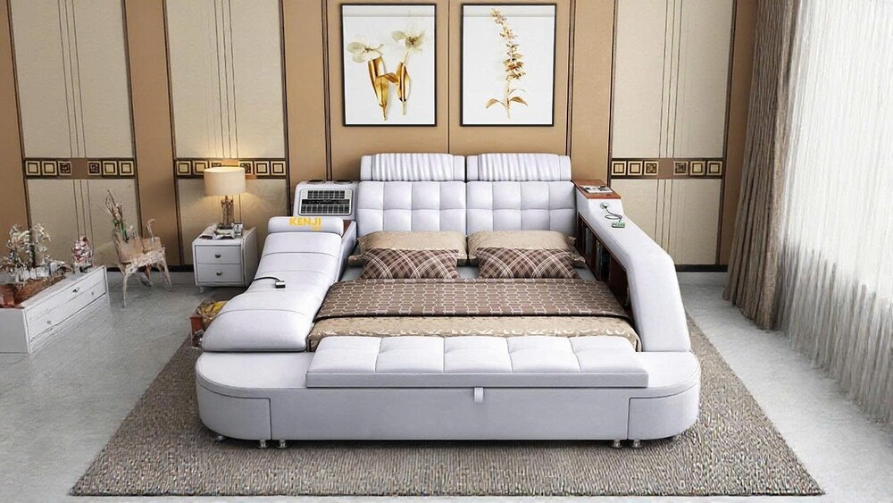 Ở phân khúc cao hơn, giường nằm massage bổ sung cơ chế rung hoặc túi khí đa điểm nhằm hỗ trợ thư giãn cơ thể. Tuy nhiên, yếu tố cốt lõi vẫn nằm ở vật liệu: gỗ tự nhiên ổn định, lớp bọc hoàn thiện bền vững và hệ thống điều chỉnh vận hành êm ái. Nội thất vì thế không chỉ là nơi nghỉ ngơi, mà trở thành cấu trúc nâng đỡ sức khỏe dài hạn.