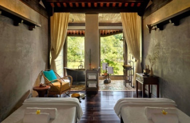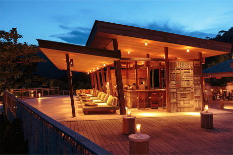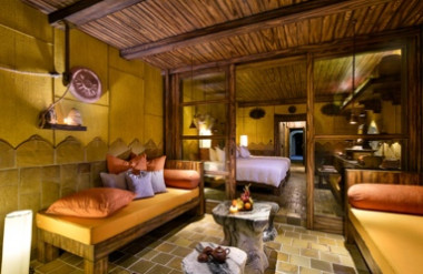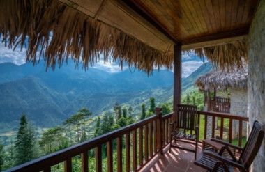 Topas Ecolodge (SaPa) cảm hứng từ nhà sàn truyền thống của miền núi phía Bắc Việt Nam, sử dụng vật liệu đá, gỗ mộc, chi tiết vải thổ cẩm đặc trưng của người dân tộc Dao đỏ và H’mong tại Sa Pa