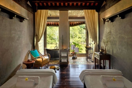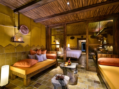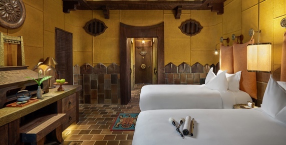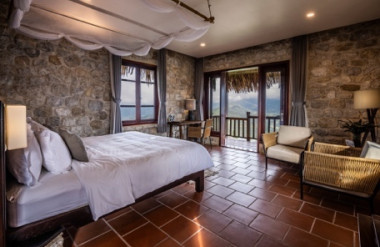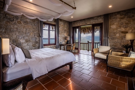 Mỗi phòng đều có các yếu tố thiết kế địa phương gợi lại triều đại vua Trần Nhân Tông, bao gồm vải bố màu cam cháy và hoa sen, được đưa vào cuộc sống như những núm đồng trên mỗi cánh cửa, lọ nhang, bao tải gạo… Du khách sẽ thấy thiếu vắng sự hiện diện của tivi – Một sự cắt giảm có mục đích để duy trì cảm giác nghỉ ngơi và kết nối bản thân tại khu tĩnh dưỡng huyền bí này.