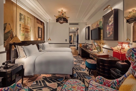 MGallery- Hotel de la Couple (Sa Pa) khai thác hiệu quả câu chuyện của sự hòa quyện giữa sắc màu dân tộc thiểu số và sự quyến rũ của thời trang Pháp những năm 1920-1930 qua màu sắc, họa tiết, chất liệu vải thổ cẩm truyền thống, chi tiết và đồ trang trí nội thất
