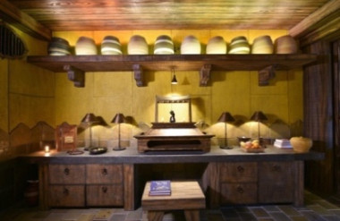 - Ánh sáng và âm thanh: Ánh sáng tự nhiên được tận dụng hiệu quả, khai thác tốt vùng tối và vùng sáng trong không gian, ánh sáng chuyển tiếp nhẹ nhàng, hướng người sử dụng đến những cảm giác huyền bí, tĩnh lặng, hòa hợp với thiên nhiên. Bên cạnh đó, âm thanh tiếng nước chảy, tiếng chuông gió là những yếu tố quan trọng thêm phần lắng đọng cảm xúc của khách hàng, được đắm chìm trong không gian cổ kính mang phong vị thiền.
