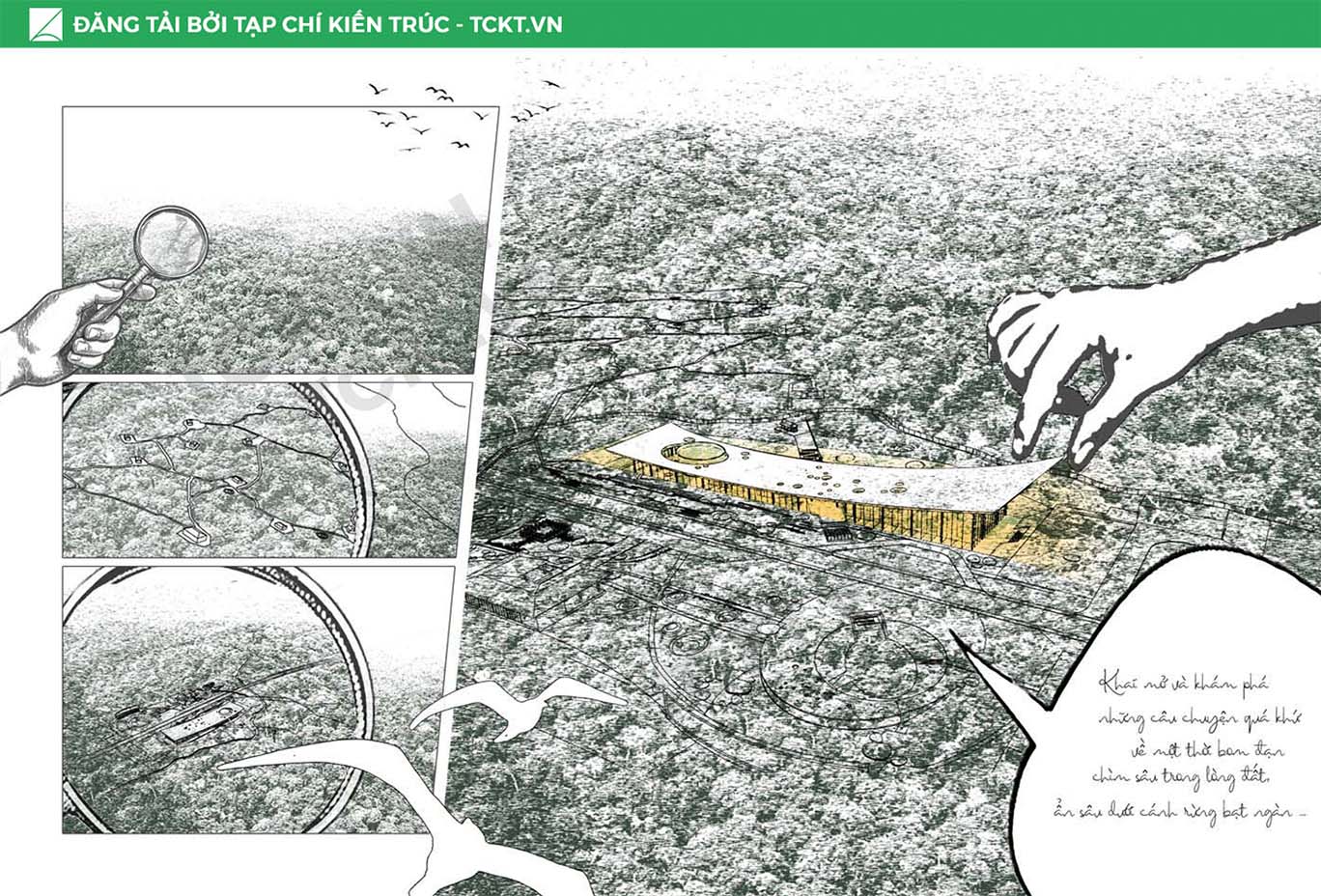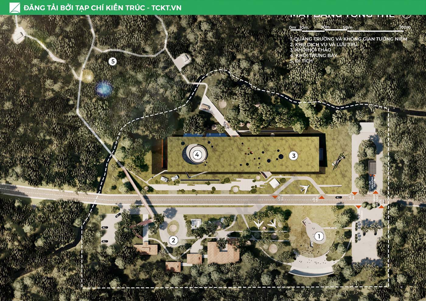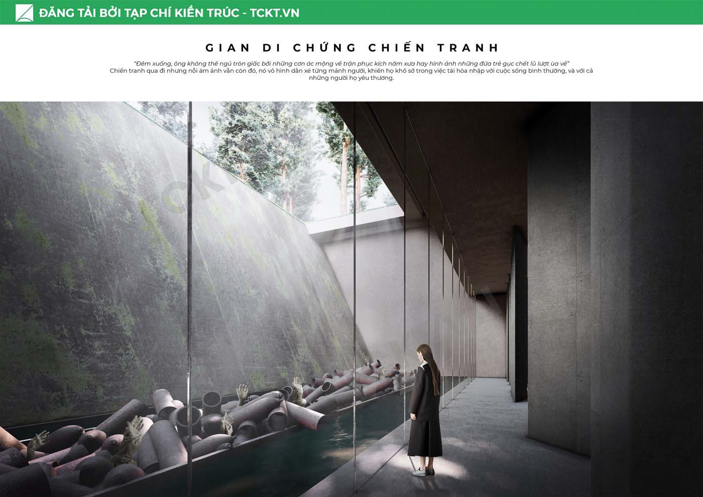 Công trình có ngôn ngữ kiến trúc đồng điệu với ngôn ngữ của cánh rừng giúp cho kiến trúc ẩn vào tự nhiên. Câu truyện quá khứ về một thời bom đạn ẩn sâu trong lòng đất được khai mở và khám phá.