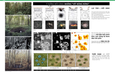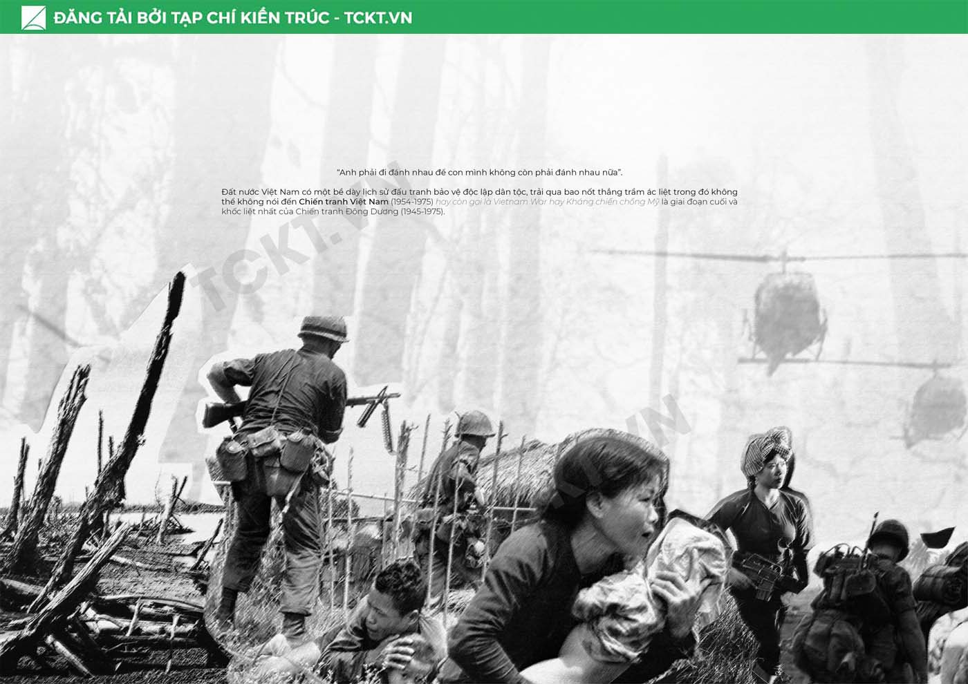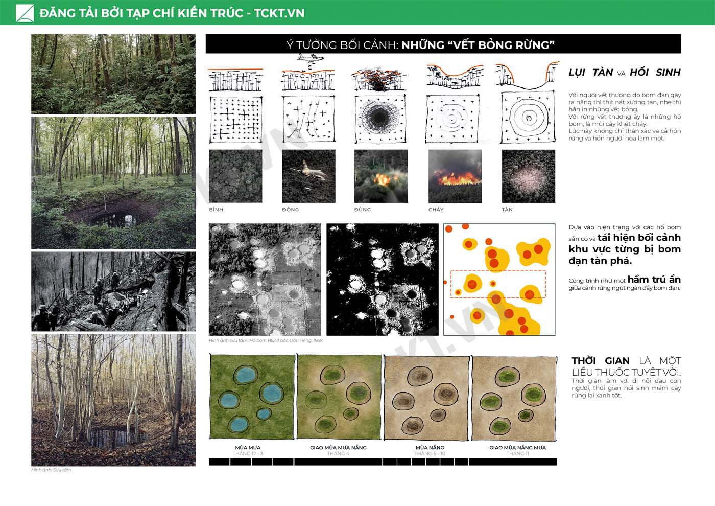 Dựa vào hiện trạng với các hố bom sẵn có và tái hiện bối cảnh khu vực từng bị bom đạn tàn phá. Công trình như một hầm trú ẩn giữa cánh rừng ngút ngàn đầy bom đạn.