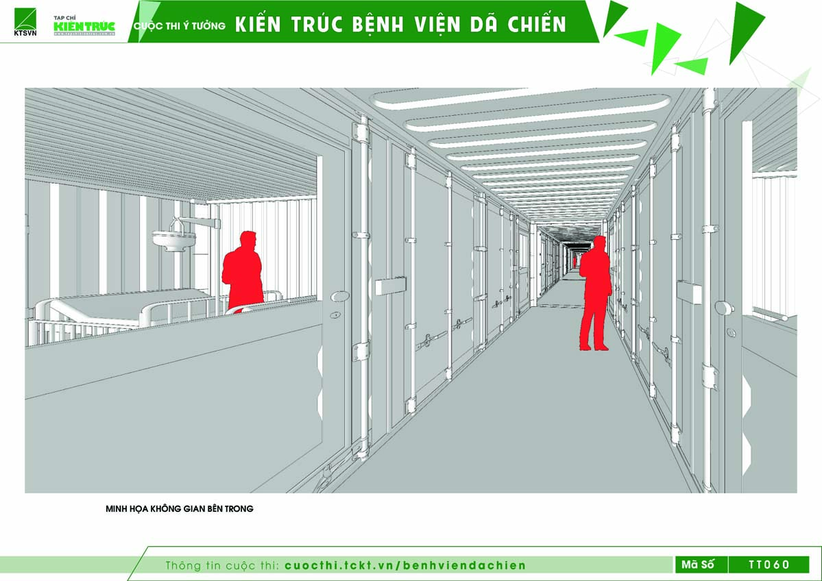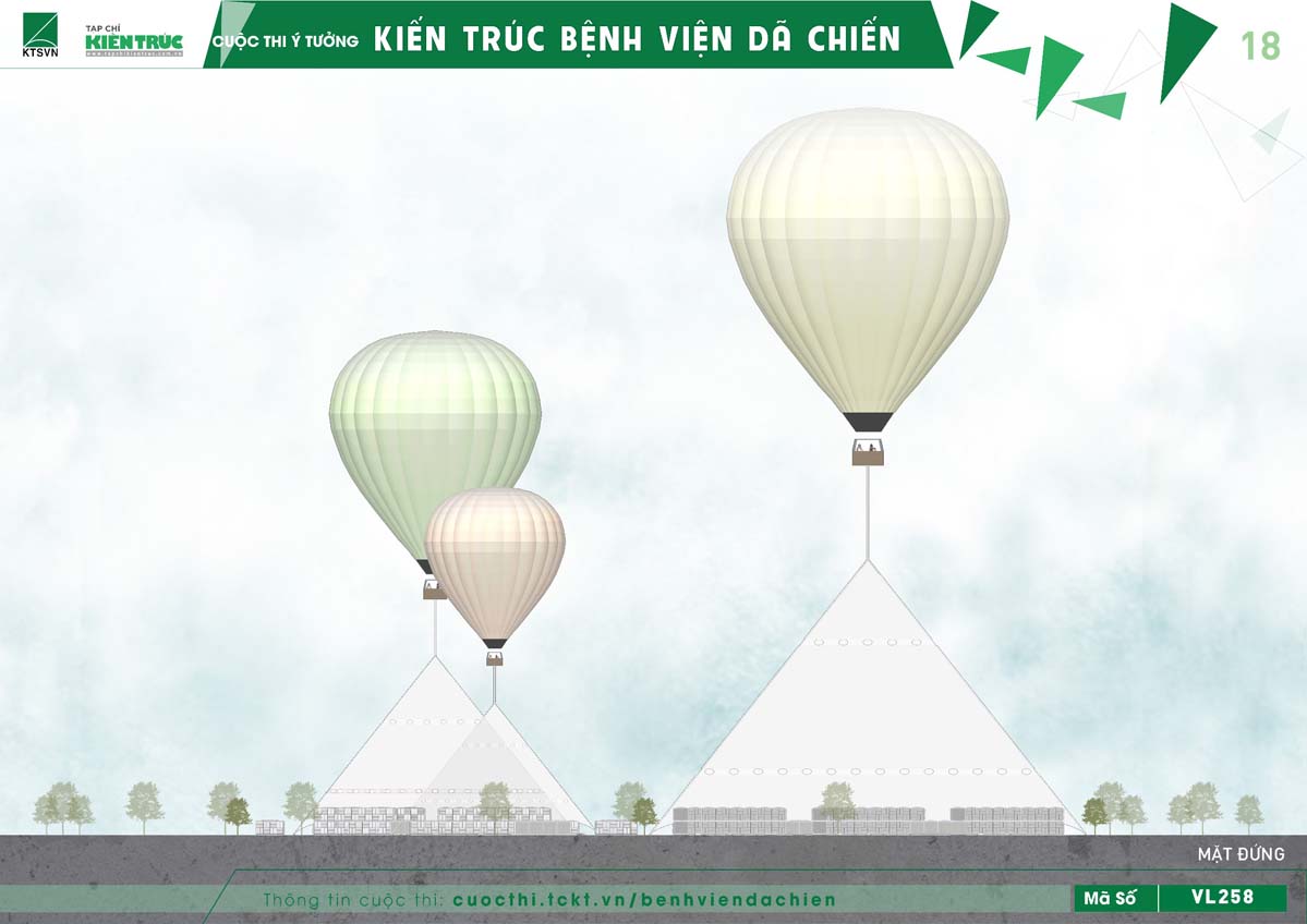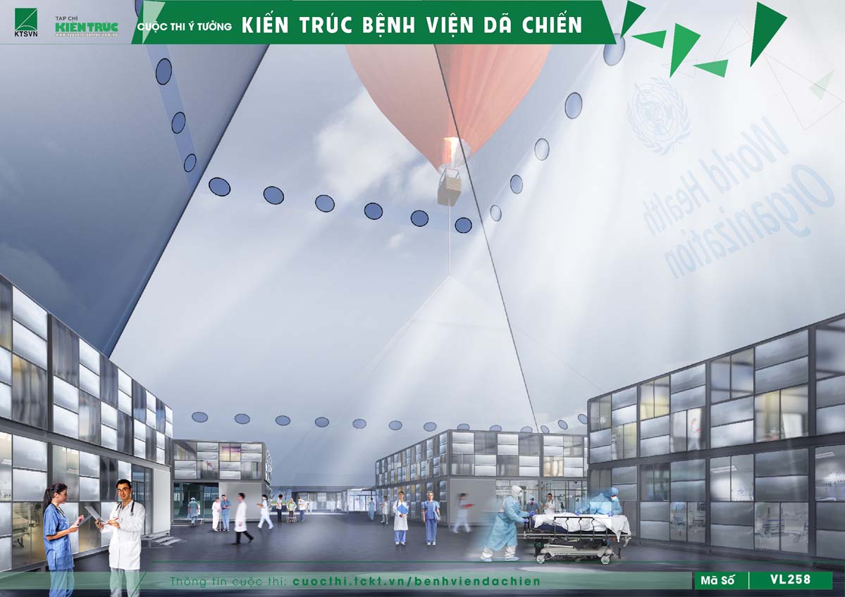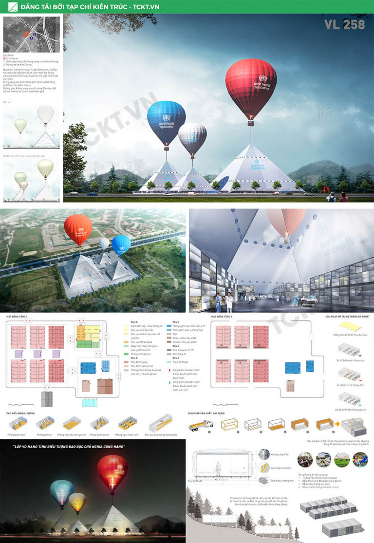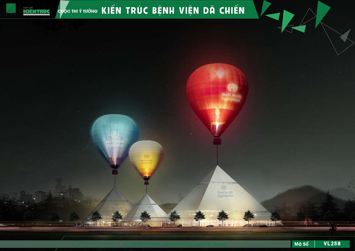 Nhận xét của Hội đồng giám khảo: “Đây là phương án được đề nghị trao giải thưởng Hội đồng về phương án có ý tưởng ấn tượng. Tác giả sử dụng khinh khí cầu để nâng mái các khối chức năng bệnh viện dã chiến, là ý tưởng tạo ấn tượng kiến trúc mới, sáng tạo, hiện đại; Không gian lớn, phù hợp với yêu cầu của bệnh viện dã chiến.”