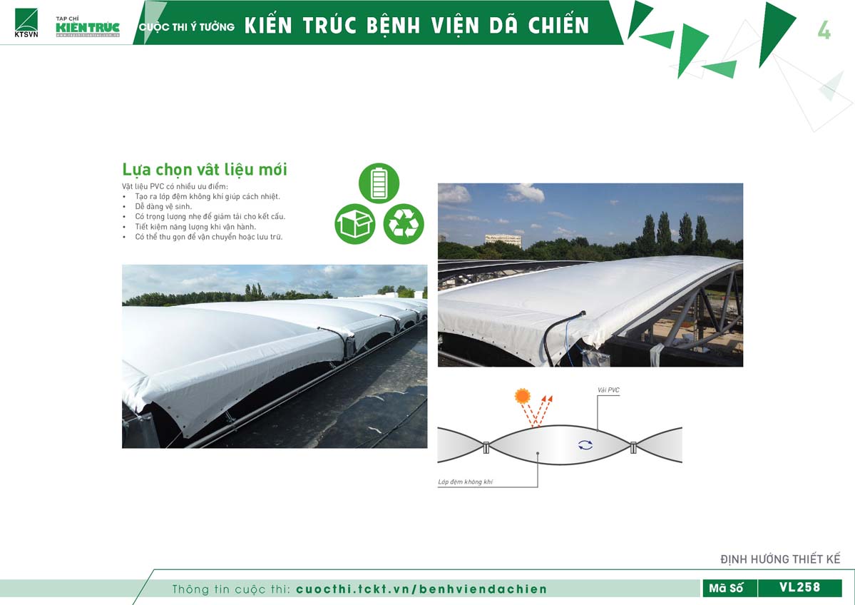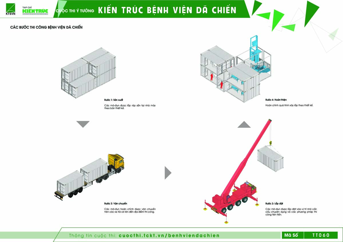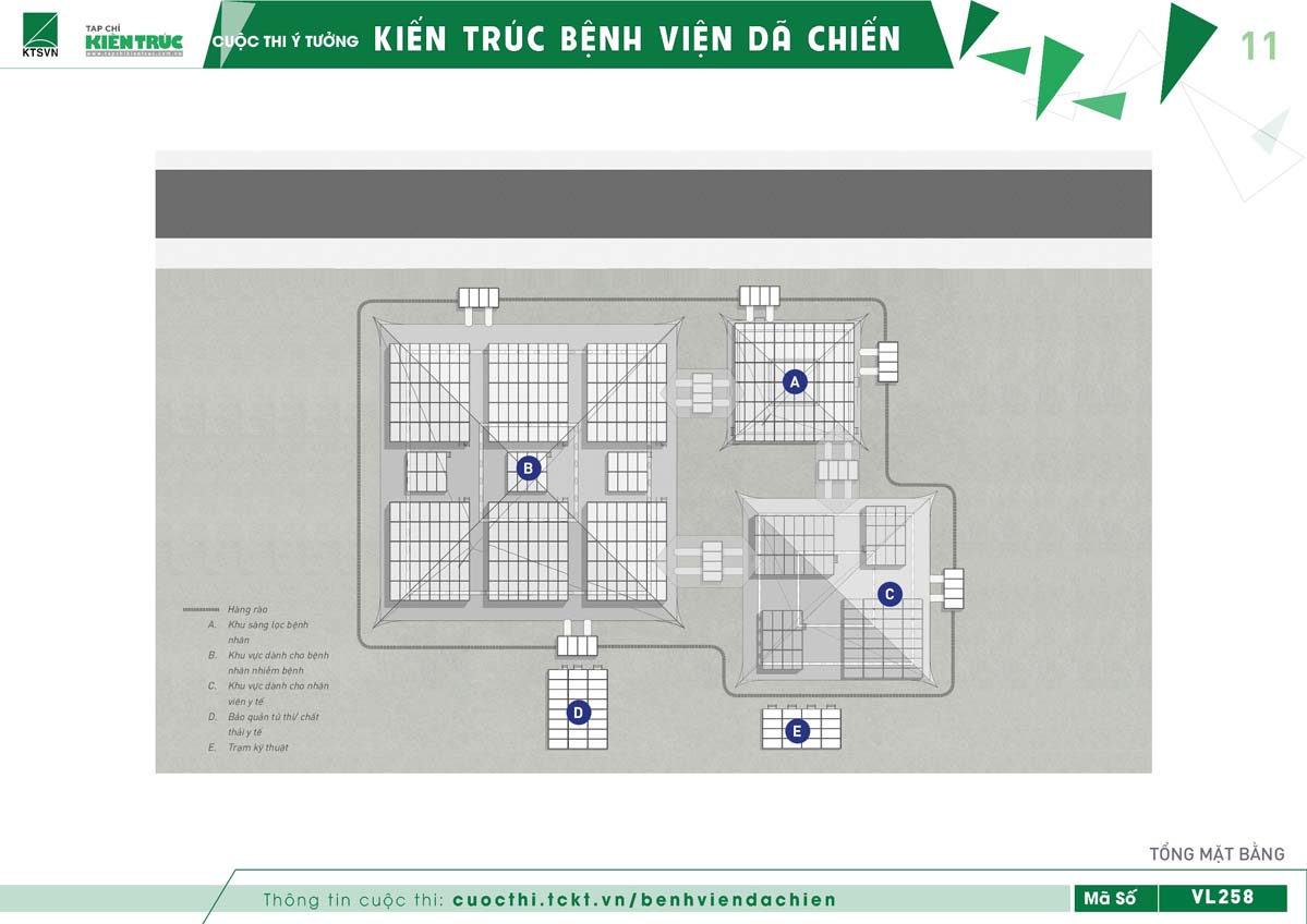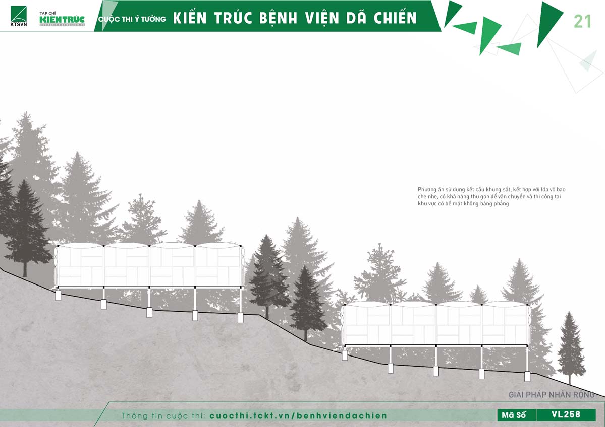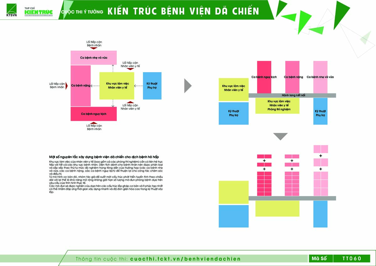 Nhận xét của Hội đồng giám khảo: “Đây là phương án được đề nghị trao giải thưởng Hội đồng về phương án có ý tưởng ấn tượng. Tác giả sử dụng khinh khí cầu để nâng mái các khối chức năng bệnh viện dã chiến, là ý tưởng tạo ấn tượng kiến trúc mới, sáng tạo, hiện đại; Không gian lớn, phù hợp với yêu cầu của bệnh viện dã chiến.”