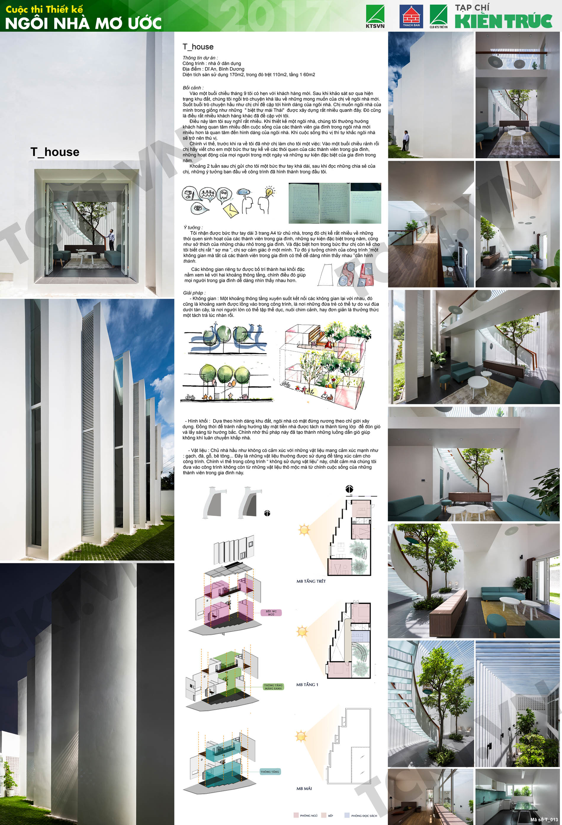 Tôi nhận được bức thư tay dài 3 trang A4 từ chủ nhà, trong đó chị kể rất nhiều về những thói quen sinh hoạt của các thành viên trong gia đình, những sự kiện đặc biệt trong năm, cũng như sở thích của những cháu nhỏ trong gia đình. Và đặc biệt hơn trong bức thư chị còn kể cho tôi biết chị rất “ sợ ma ”, chị sợ cảm giác ở một mình. Từ đó ý tưởng chính của công trình “một không gian mà tất cả các thành viên trong gia đình có thể dễ dàng nhìn thấy nhau ”dần hình thành.