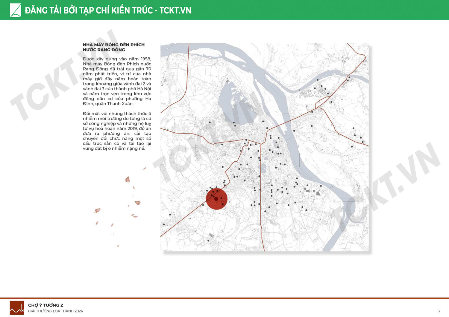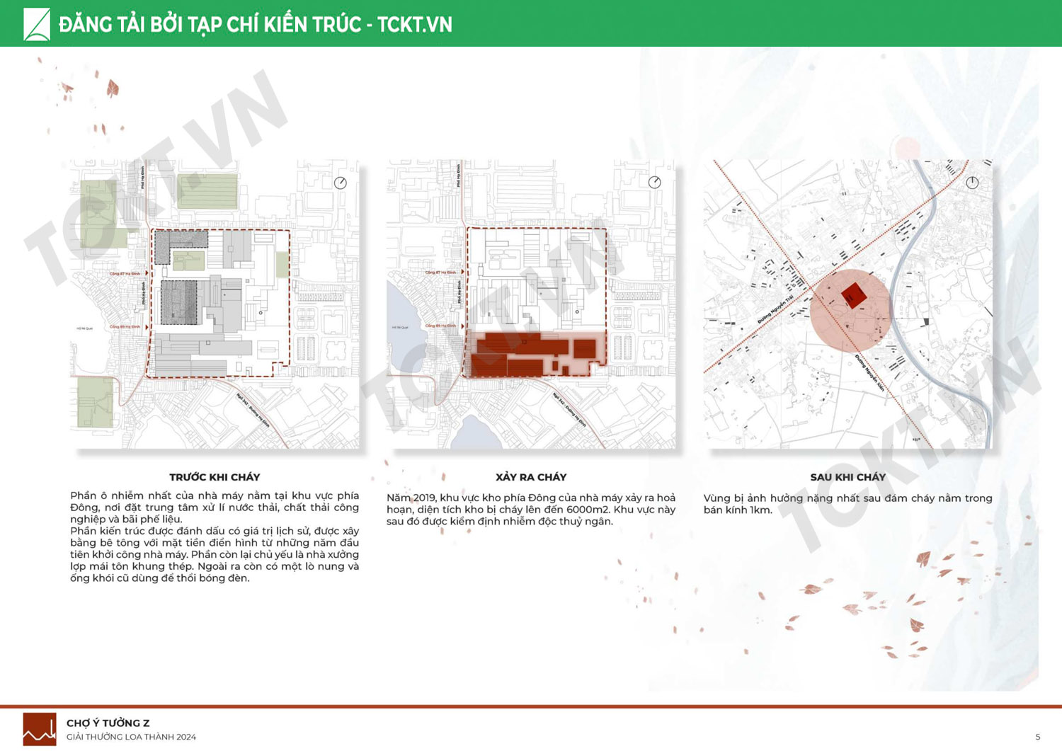 Đối mặt với những thách thức ô nhiễm môi trường do từng là cơ sở công nghiệp và những hệ luỵ từ vụ hoả hoạn năm 2019, đồ án đưa ra phương án: cải tạo chuyển đổi chức năng một số cấu trúc sẵn có và tái tạo lại vùng đất bị ô nhiễm nặng nề.