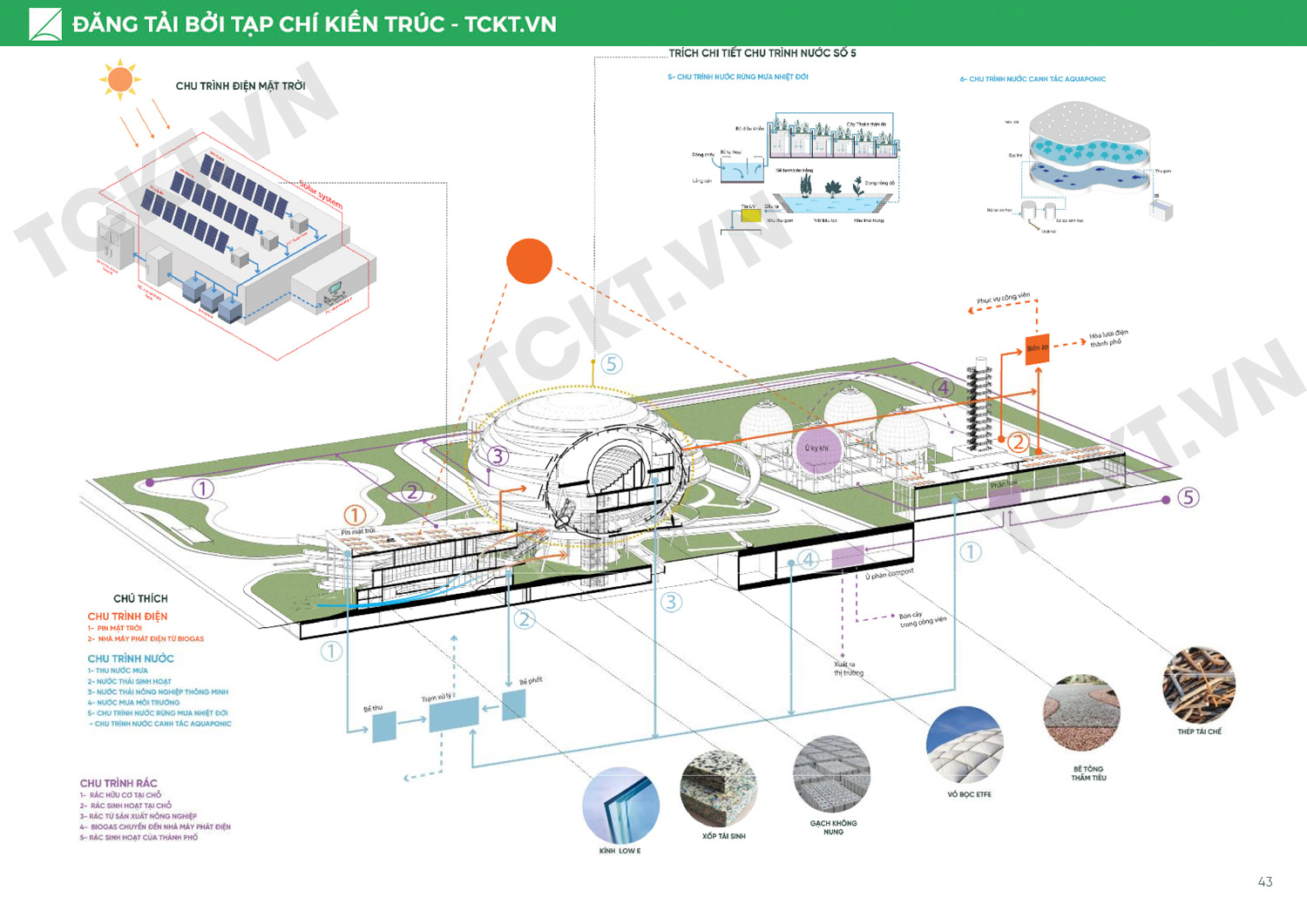 Công viên sử dụng những công nghệ tiên tiến giúp giải quyết các vấn đề về nước sạch, năng lượng, chất thải và nông nghiệp. Từ đó đáp ứng yêu cầu về kiến trúc xanh – bền vững.