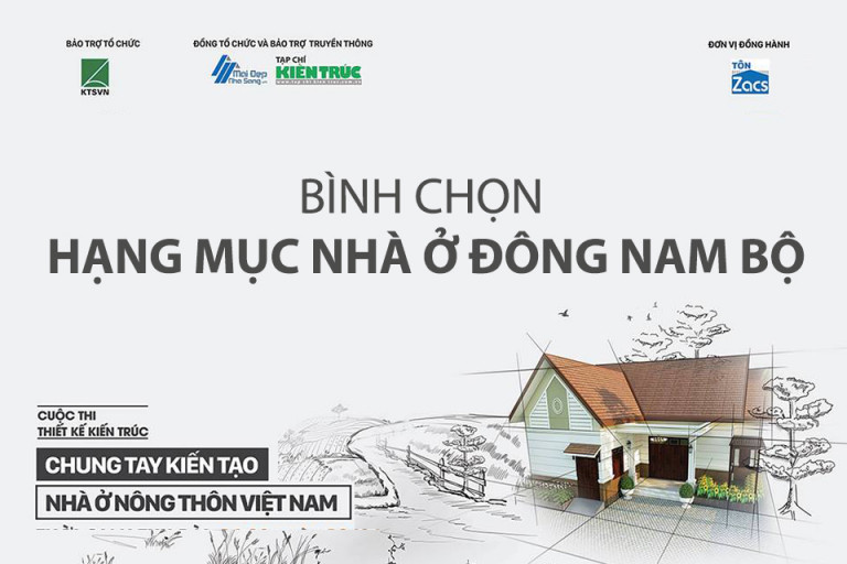 Tạp chí Kiến trúc trân trọng kính mời quý độc giả tham gia bình chọn trực tuyến nhằm chọn ra thiết kế được yêu thích nhất – cuộc thi Thiết kế kiến trúc: “Chung tay kiến tạo nhà ở nông thôn Việt Nam” . Dưới đây là các tác phẩm Hạng mục Nhà ở miền Đông Nam Bộ được tổng hợp. Để xem đầy đủ nội dung bài thi và thực hiện bình chọn, bạn đọc nhấn vào hình ảnh đại diện của phương án và thực hiện theo hướng dẫn trong các bài viết.