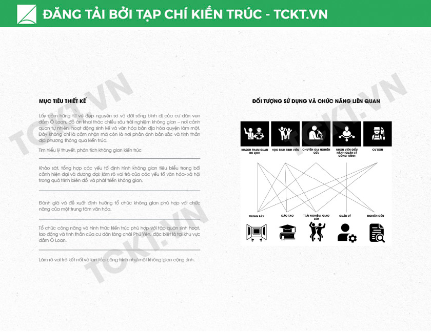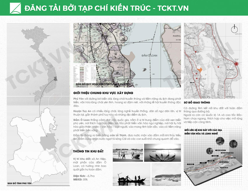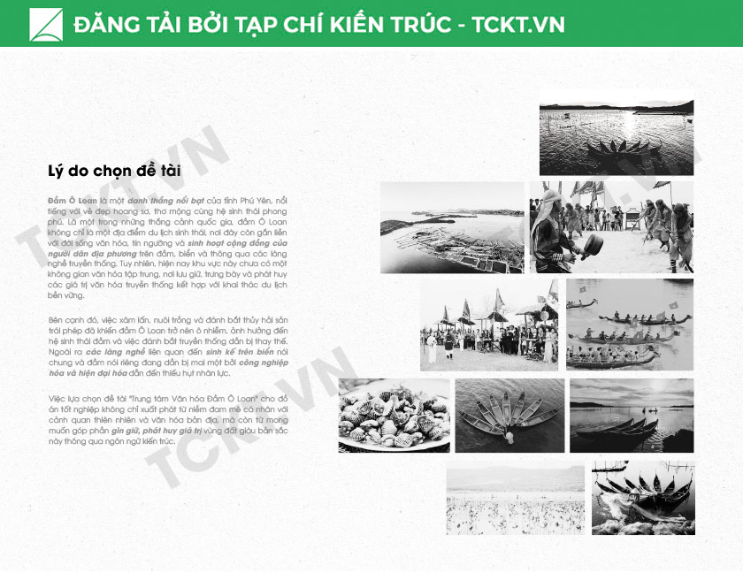 Đồ án là một công trình văn hóa đặt tại huyện Tuy An, tỉnh Phú Yên – nơi có Đầm Ô Loan được công nhận là danh thắng quốc gia với vẻ đẹp nguyên sơ và tầng tầng lớp lớp giá trị sinh thái, văn hóa. Không chỉ là một thắng cảnh, Đầm Ô Loan còn là nơi lưu giữ những ký ức sống động về đời sống làng chài, là không gian sinh hoạt gắn bó sâu sắc với cộng đồng địa phương và những làng nghề truyền thống ven đầm.
