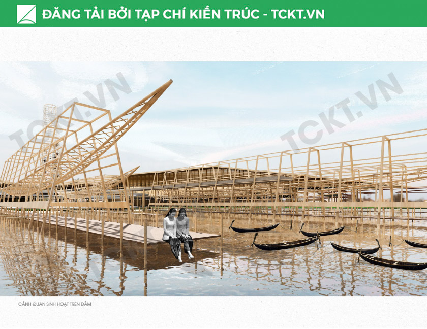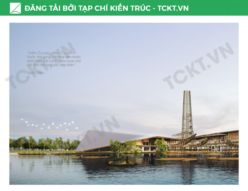 Ngoài ra, công trình còn là cánh cửa mở ra những góc nhìn đắt giá về Đầm Ô Loan – nơi trời nước giao hòa, nơi di sản không chỉ được lưu giữ mà còn tiếp tục được sống. Đồ án là một lời hồi đáp đầy trân trọng dành cho vùng đất này bằng kiến trúc, bằng sự lắng nghe và bằng tình yêu dành cho văn hóa bản địa.