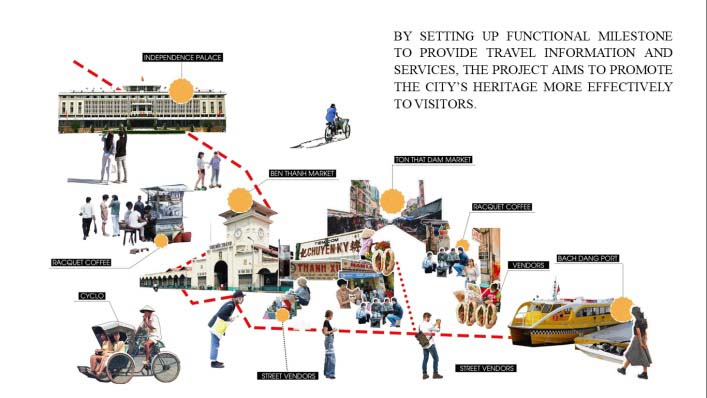 Mục tiêu của đồ án là tạo ra sự kết nối, tương tác giữa các “di sản” tại TP HCM. Đối tượng “di sản” được nhóm thí sinh chia làm 2 loại, đó là: Công trình di sản đã được công nhận, như Dinh Thống Nhất, Nhà hát TP, Bưu điện TP,… Công trình di sản chưa được công nhận là những quán ăn, uống trên vỉa hè, trong hẻm, trong những chung cư cũ, đã và đang thể hiện bản sắc, tính cách đặc trưng của TP qua các giai đoạn lịch sử.