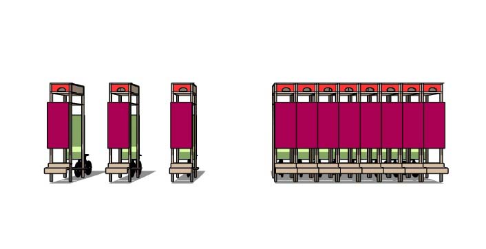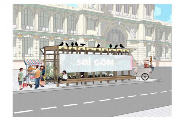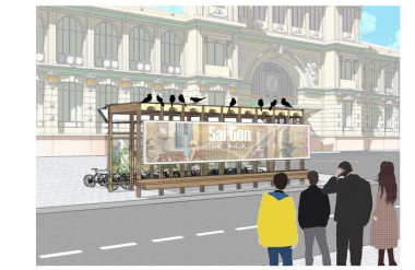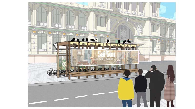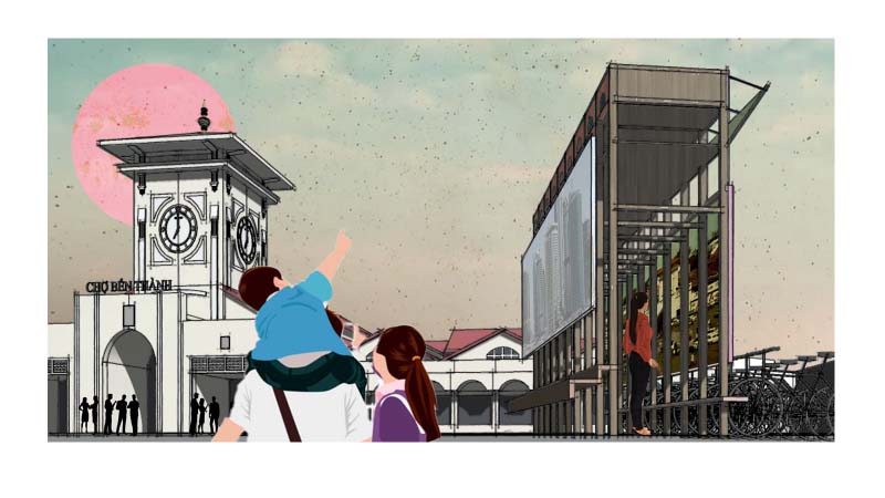 Giải pháp thiết kế sau khi làm việc với SV quốc tế đã được định hình một cách rõ ràng, cụ thể không chỉ về mặt ý tưởng và còn đi sâu vào chi tiết kiến trúc và công năng sử dụng. Để kết nối, tương tác “di sản”, nhóm SV đề xuất sử dụng các trạm tại những điểm công trình di “sản”. Chức năng chính của trạm giống như một không gian giới thiệu, đề xuất địa điểm trải nhiệm cho khách du lịch, đồng thời nó cũng là một trạm thuê xe đạp để đáp ứng việc di chuyển cho du khách trong bán kính di chuyển phù hợp bên cạnh đó việc dùng xe đạp trong hành trình trải nghiệm cũng là một hình thức trải nghiệm xanh, bảo vệ môi trường, tạo một hình ảnh văn minh cho thành phố. Không những thế trạm còn có chức năng đóng dấu check in, được thiết kế theo dạng con tem với những hình ảnh đặc trưng của Sài Gòn, giúp du khách có những trải nghiệm thú vị khi check in tại mỗi điểm đến với mỗi con tem khác nhau.