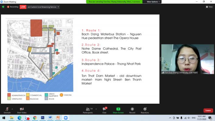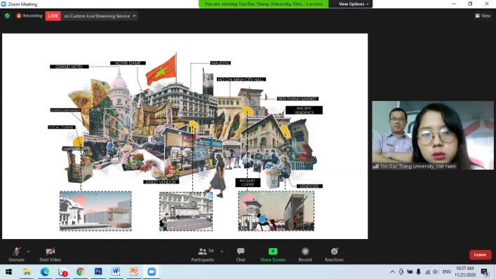 - Giai đoạn 1, nhóm SV Đại học Tôn Đức Thắng tìm hiểu, xác định thách thức của du lịch đối với công trình “di sản” và chọn hướng tiếp cận thách thức để nghiên cứu, đề xuất giải pháp bằng sản phẩm kiến trúc;