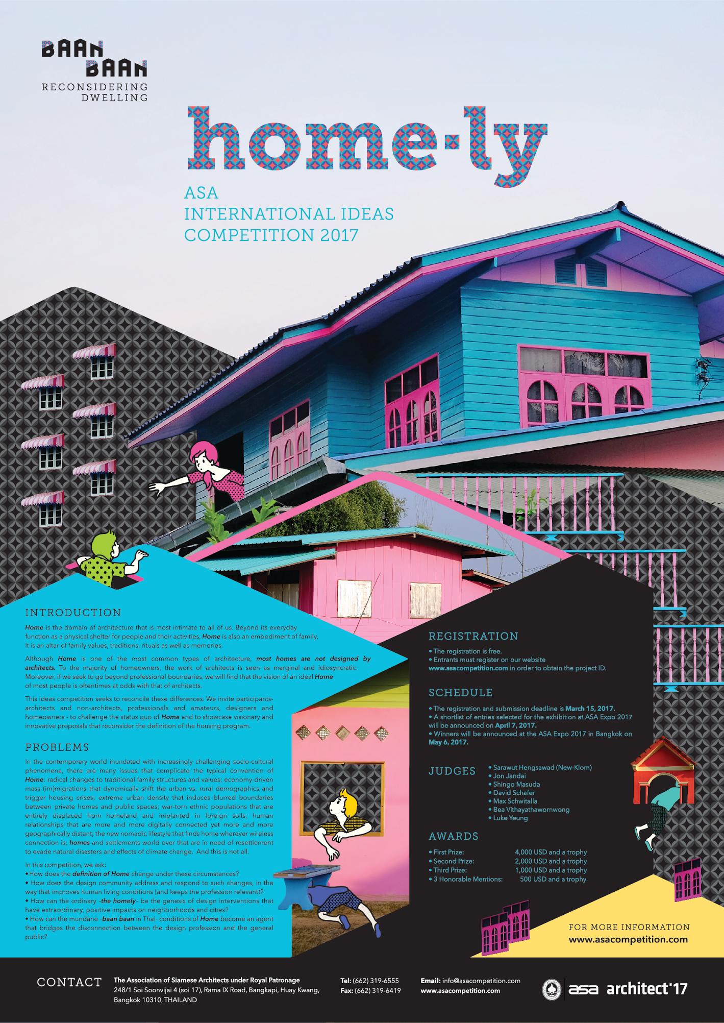Vì vậy, Hội KTS Thái Lan đã tổ chức cuộc thi Ý tưởng kiến trúc nhà ở hướng tới sự dung hoà những khác biệt nói trên. Mọi ý tưởng từ các KTS, sinh viên kiến trúc hay những người không hoạt động trong nghề kiến trúc đều được hoan nghênh.