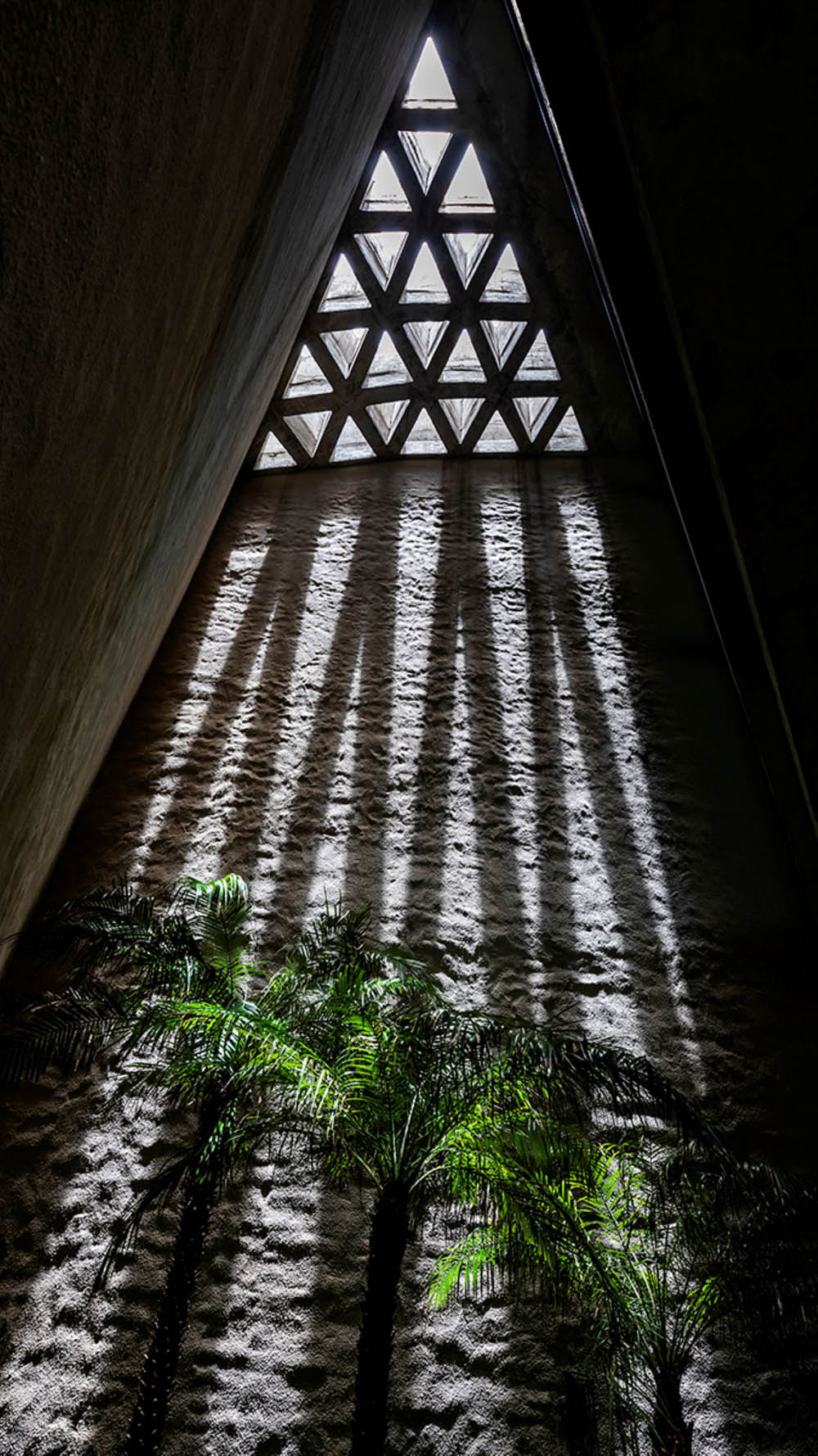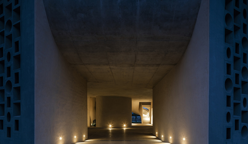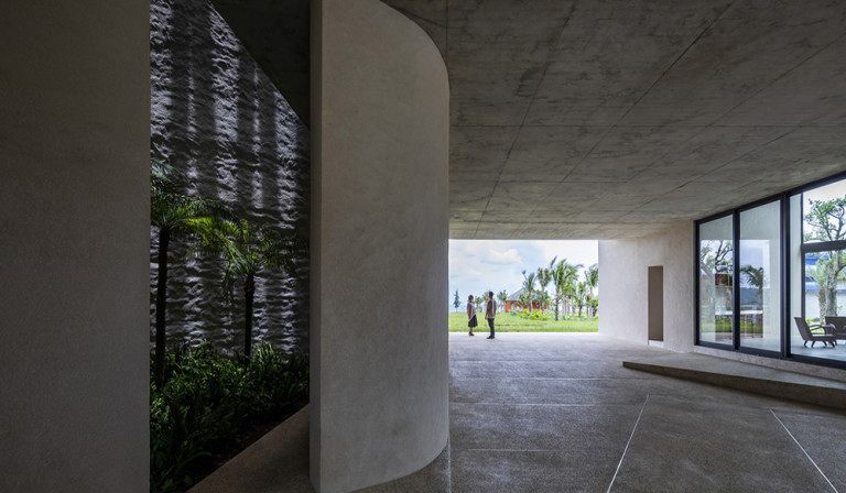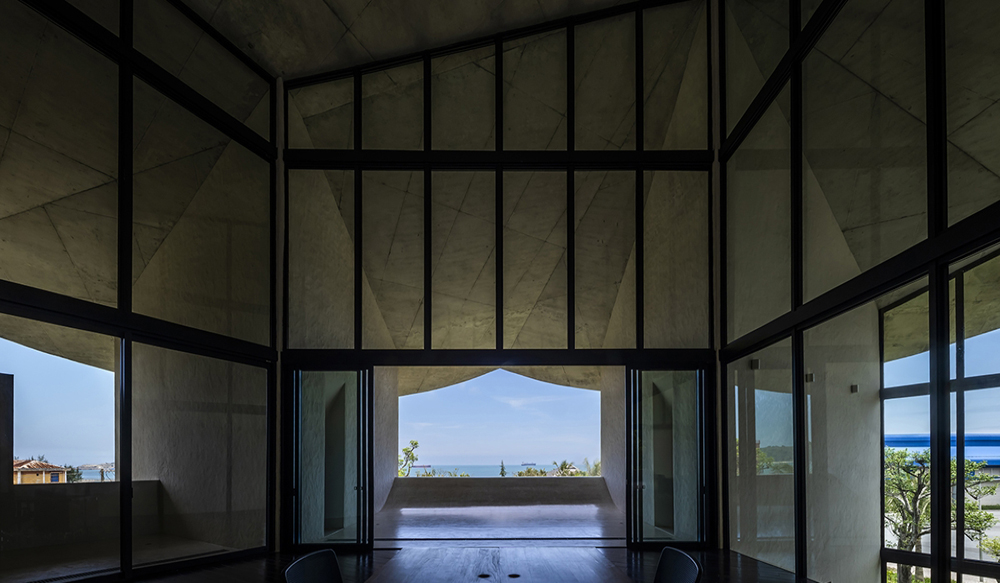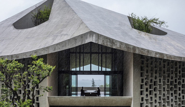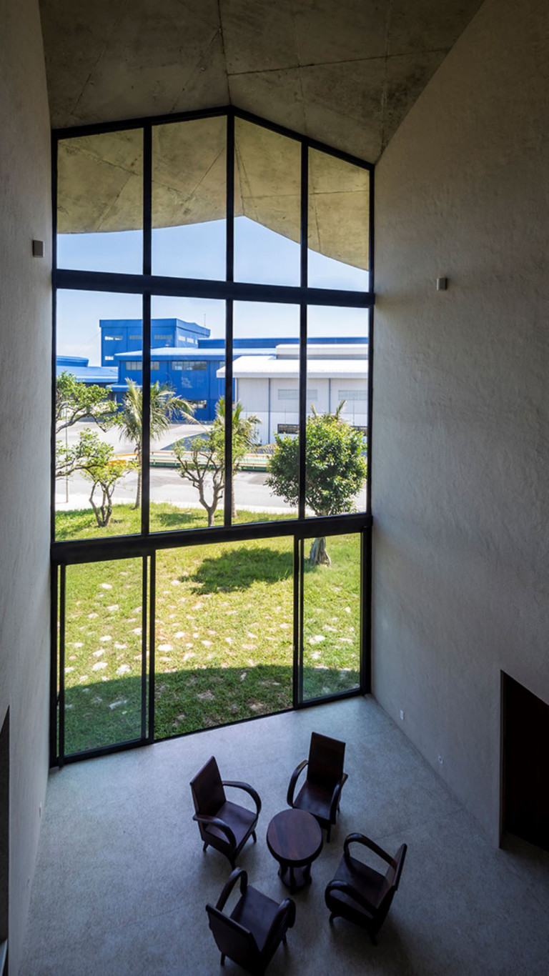 Dưới một mái nhà lớn hình nón giống như chiếc nón lá truyền thống của người nông dân Việt Nam, nhiều chức năng khác nhau được tổ chức bởi bảy khối hình tam giác xác định các không gian chung và không gian riêng. Bên trong các khối chứa những chức năng khép kín như phòng ngủ và văn phòng riêng, đồng thời không gian giữa các khối chứa những chức năng tập trung như văn phòng và phòng lounge chung. Tính chất hang động của không gian giữa cho phép ánh sáng tự nhiên thay đổi liên tục và các điều kiện thông gió xuyên suốt không gian. Các khối thông gió đúc sẵn được thiết kế đặc thù cho bề mặt bên ngoài của các khối hình tam giác, mang lại sự riêng tư cho những căn phòng bên trong. Những khối bê tông cốt sợi thủy tinh này có kích thước lớn hơn thông thường để phù hợp với quy mô hùng vĩ của phông nền cảnh quan xung quanh.