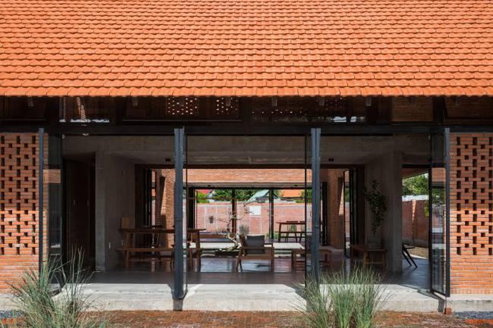 Công trình là sự kết hợp các yếu tố đặc – rỗng, nắng – gió và chơi khối tích khéo léo để tạo nên một công trình thẩm mỹ tối giản kiểu Việt, có khả năng tự thở giữa khí hậu nhiều nắng gió Long An.
