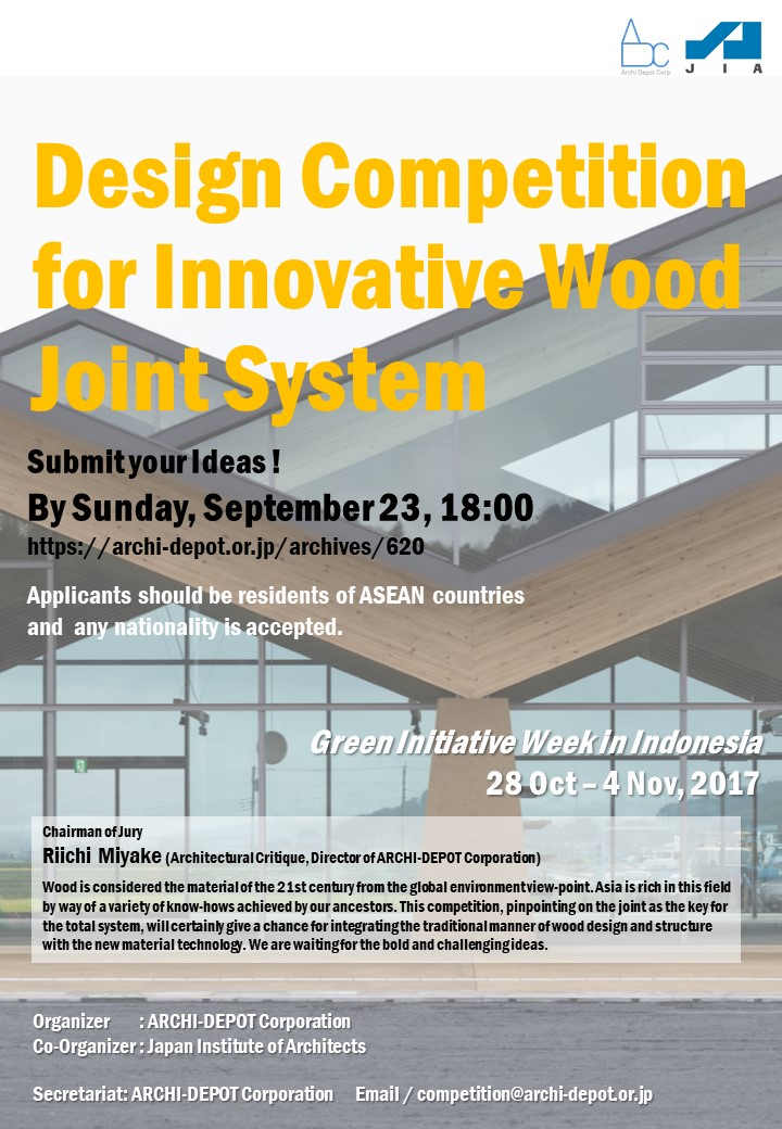 Cuộc thi Thiết kế sáng tạo liên kết gỗ (Innovative Wood Joint System) do Công ty Archi – Depot phối hợp với Viện kiến trúc sư Nhật Bản đồng tổ chức sẽ diễn ra trước Tuần lễ Sáng kiến Xanh (tháng 10 đến tháng 11 năm 2017).