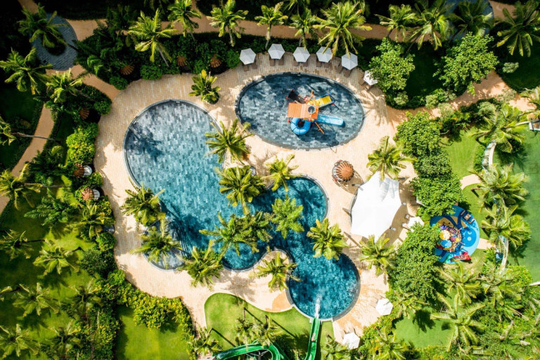 - Công trình mang đậm đà nét kiến trúc nhiệt đới và sử dụng vật liệu địa phương, kết hợp hài hòa với vật liệu hiện đại kiến tạo nên quần thể công trình nghỉ dưỡng giầu bản sắc và mang tầm cỡ quốc tế.