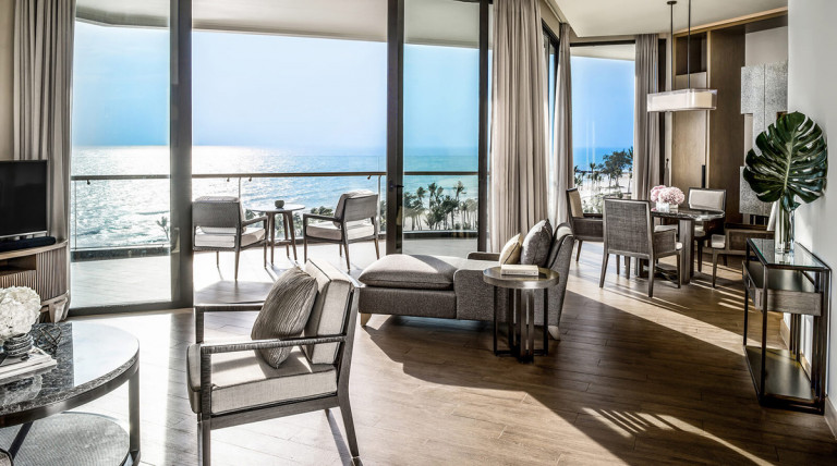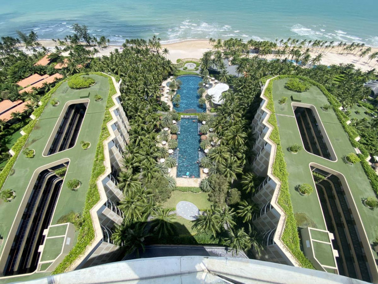 “Khách sạn 500 phòng, đạt tiêu chuẩn 5 sao, thiết kế cho khách sạn biển, resort. Tổ hợp có cấu trúc mới: tạo ra một ngọn “đồi xanh”, trườn xuống 4 cánh, tạo hình như con bạch tuộc, tất cả các phòng đều hướng biển. Thiết kế theo phong cách kiến trúc nhiệt đới, sử dụng vật liệu địa phương, cảnh quan sân vườn đẹp, sinh động… mang đến cho du khách một kỳ nghỉ nhiều trải nghiệm lý thú”.