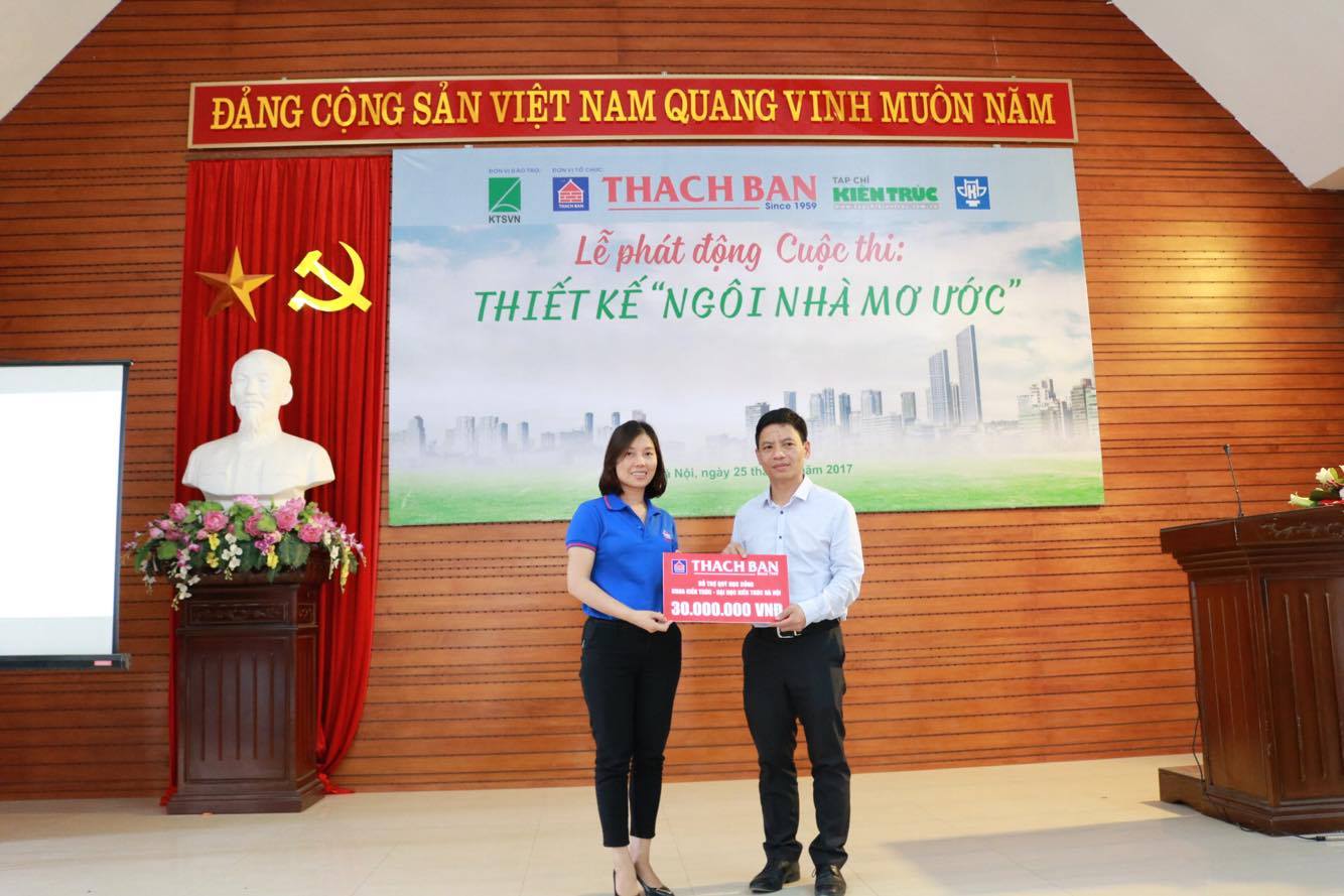 Ngoài chia sẻ và giới thiệu về cuộc thi, để gia tăng sự kết nối giữa cơ sở đào tạo và nhà sản xuất vật liệu đồng thời góp phần vào các hoạt động sinh hoạt chuyên môn của CLB Kiến trúc sư trẻ, CLB Sinh viên Kiến trúc tại nhà trường, Tập đoàn Thạch Bàn đã trao tặng một Quỹ học bổng cho Khoa Kiến trúc – trường ĐH Kiến trúc Hà Nội.