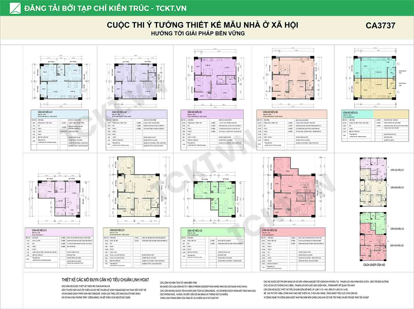 Về cấu trúc nhà và cách tổ hợp module căn hộ trong tổng thể kiến trúc, cần đảm bảo tính linh hoạt và đa tiện ích. Các không gian thừa hoặc bắt buộc về kỹ thuật như lõi giao thông đứng, thang máy, thang bộ, thang thoát hiểm, phòng rác, phòng lánh nạn, phòng kỹ thuật điện – nước cần được tận dụng hợp lý để bổ trợ cho khối công cộng và bù đắp diện tích sử dụng cho căn hộ, tránh lãng phí không gian.