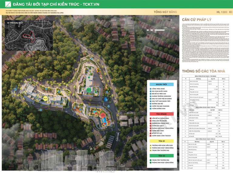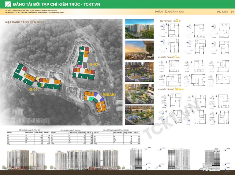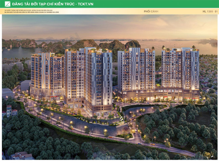 Ý tưởng thiết kế của dự án Nhà ở xã hội thuộc Khu dân cư đồi Ngân Hàng được hình thành từ định hướng xây dựng một mô hình nhà ở hiện đại, bền vững và có bản sắc riêng trong bối cảnh tự nhiên và xã hội của phường Hà Lầm, Quảng Ninh. Dự án không chỉ đáp ứng nhu cầu an cư của người dân mà hướng đến kiến tạo một môi trường sống chất lượng, xanh và thân thiện. Ba tòa nhà G-01, G-02 và MISAKI được tổ chức theo tổng mặt bằng đã duyệt, với hình khối tuân theo dạng địa hình khu đất nhằm giảm thiểu tác động đến địa hình tự nhiên, đồng thời tạo sự hài hòa về quy hoạch và cảnh quan tổng thể.