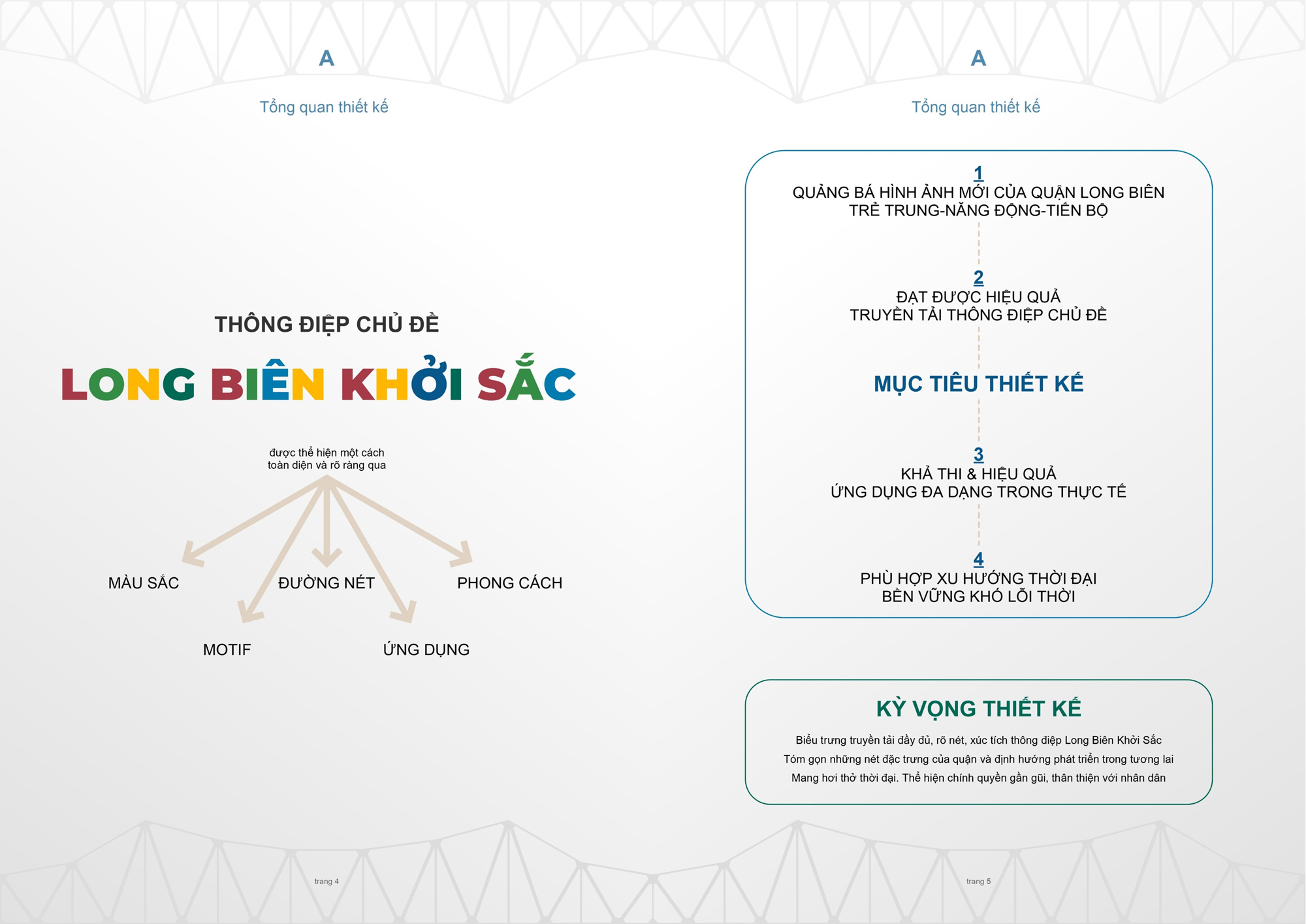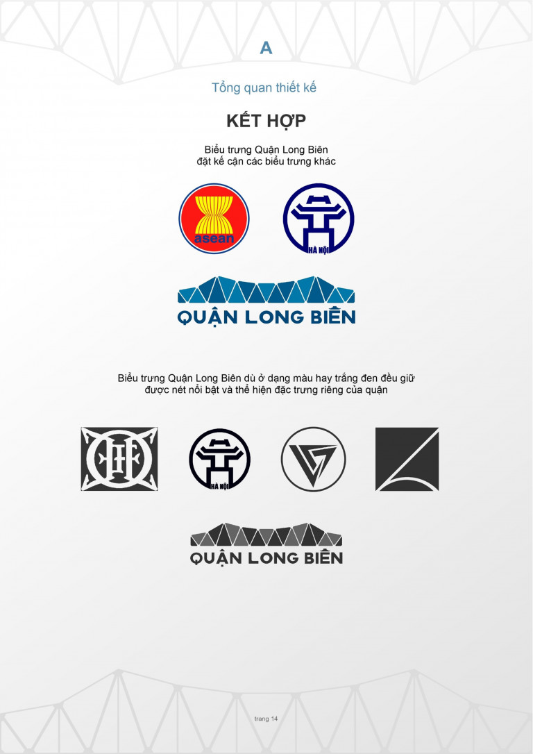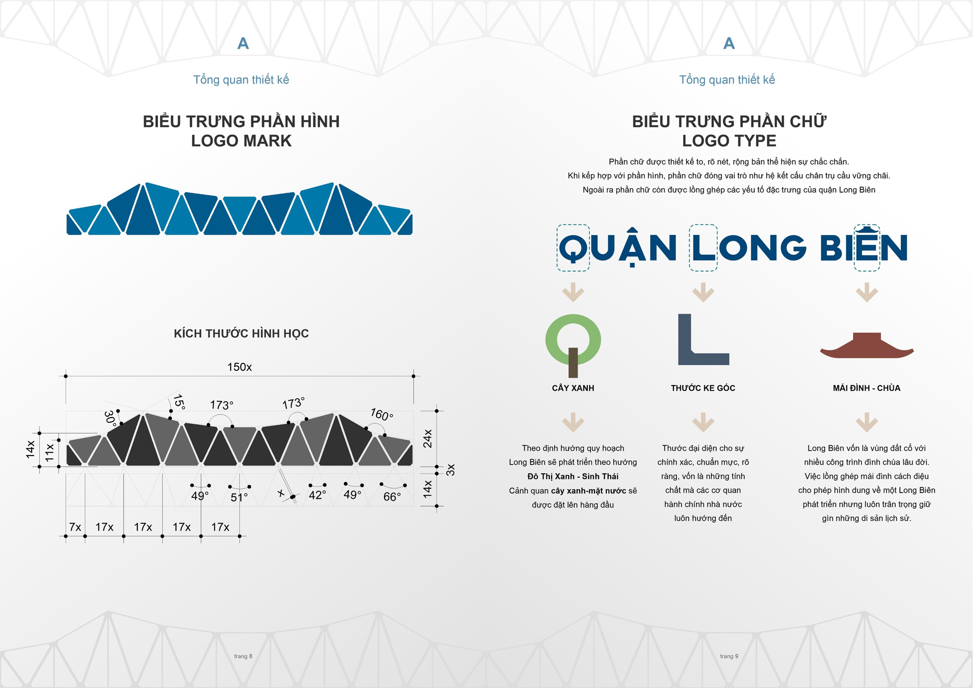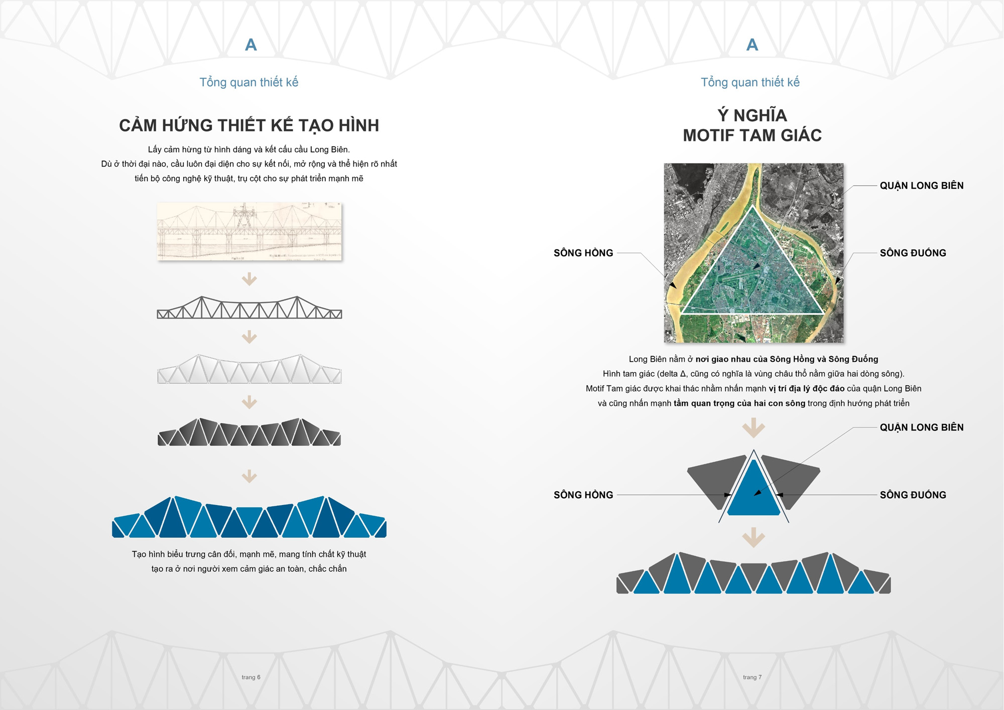 - Motif Tam giác được khai thác nhằm nhấn mạnh vị trí địa lý độc đáo của quận Long Biên. Và cũng nhấn mạnh tầm quan trọng của hai con sông trong định hướng phát triển.