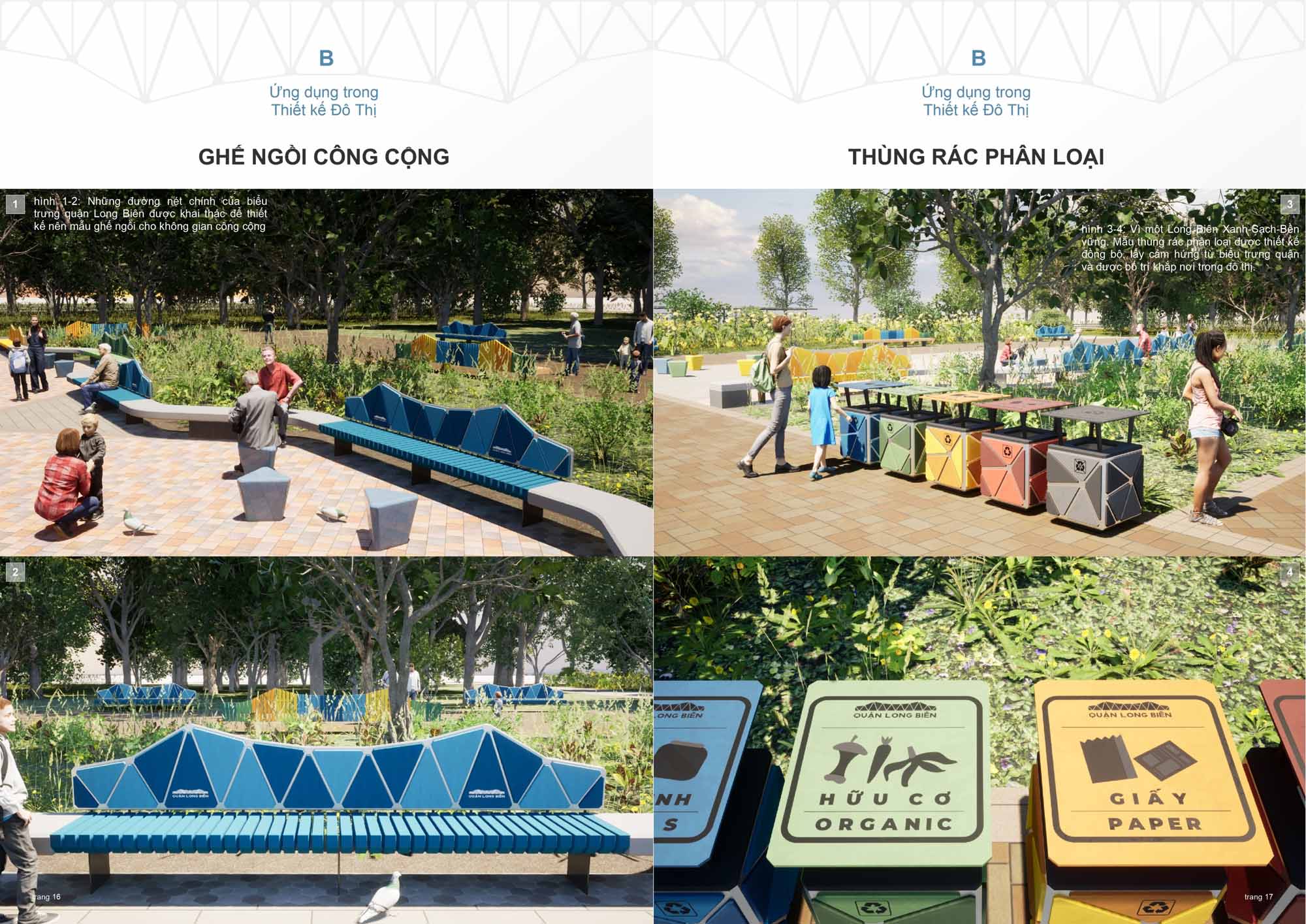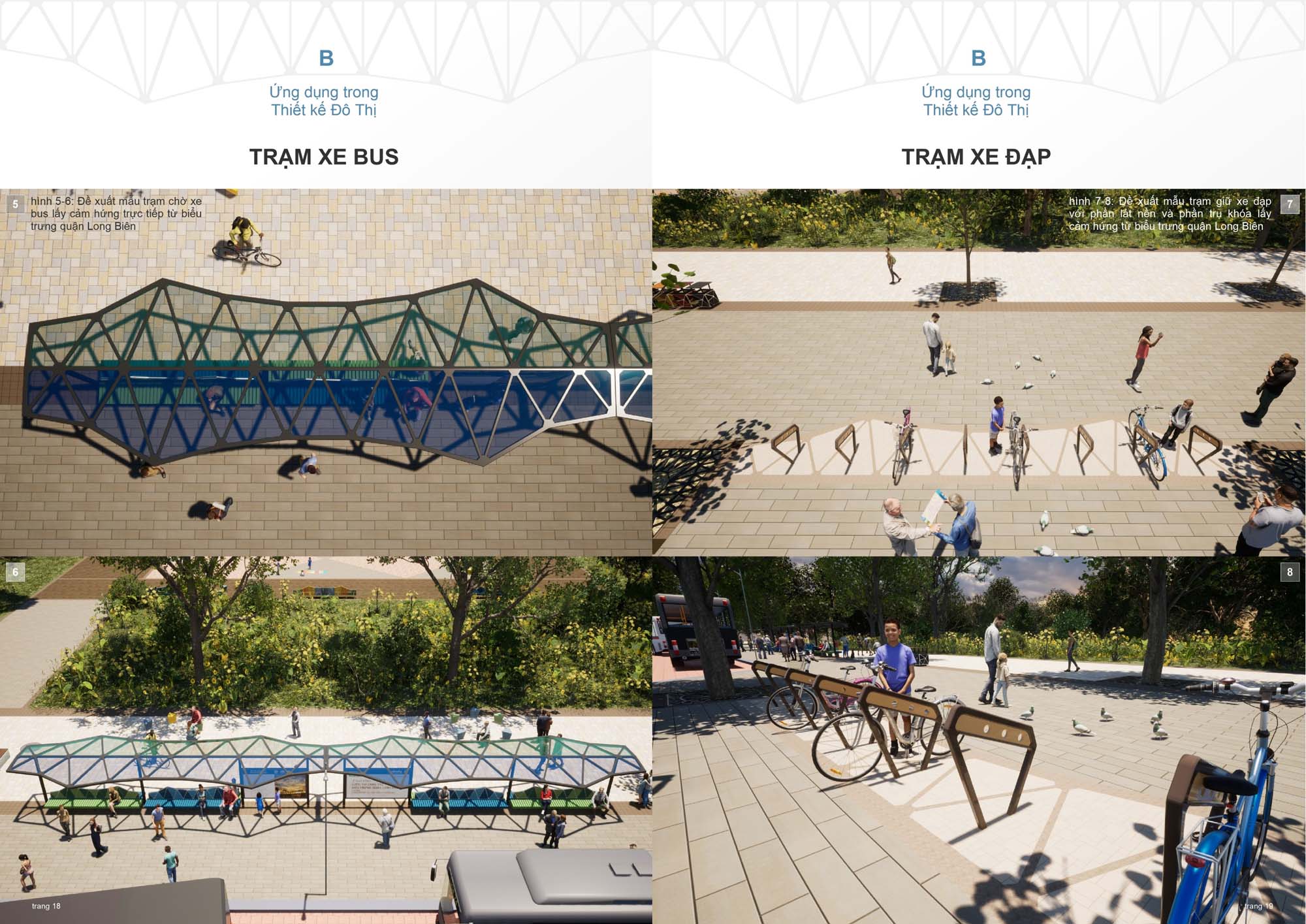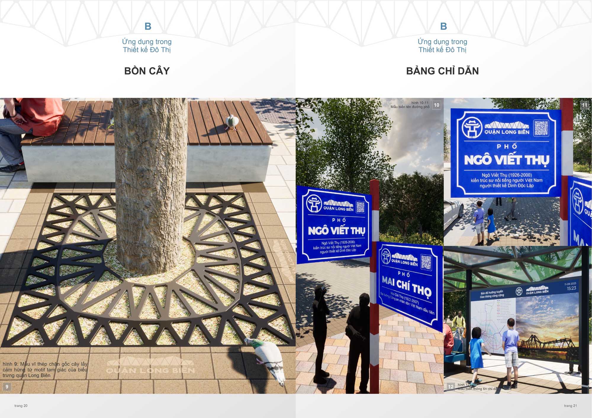 - Motif Tam giác được khai thác nhằm nhấn mạnh vị trí địa lý độc đáo của quận Long Biên. Và cũng nhấn mạnh tầm quan trọng của hai con sông trong định hướng phát triển.