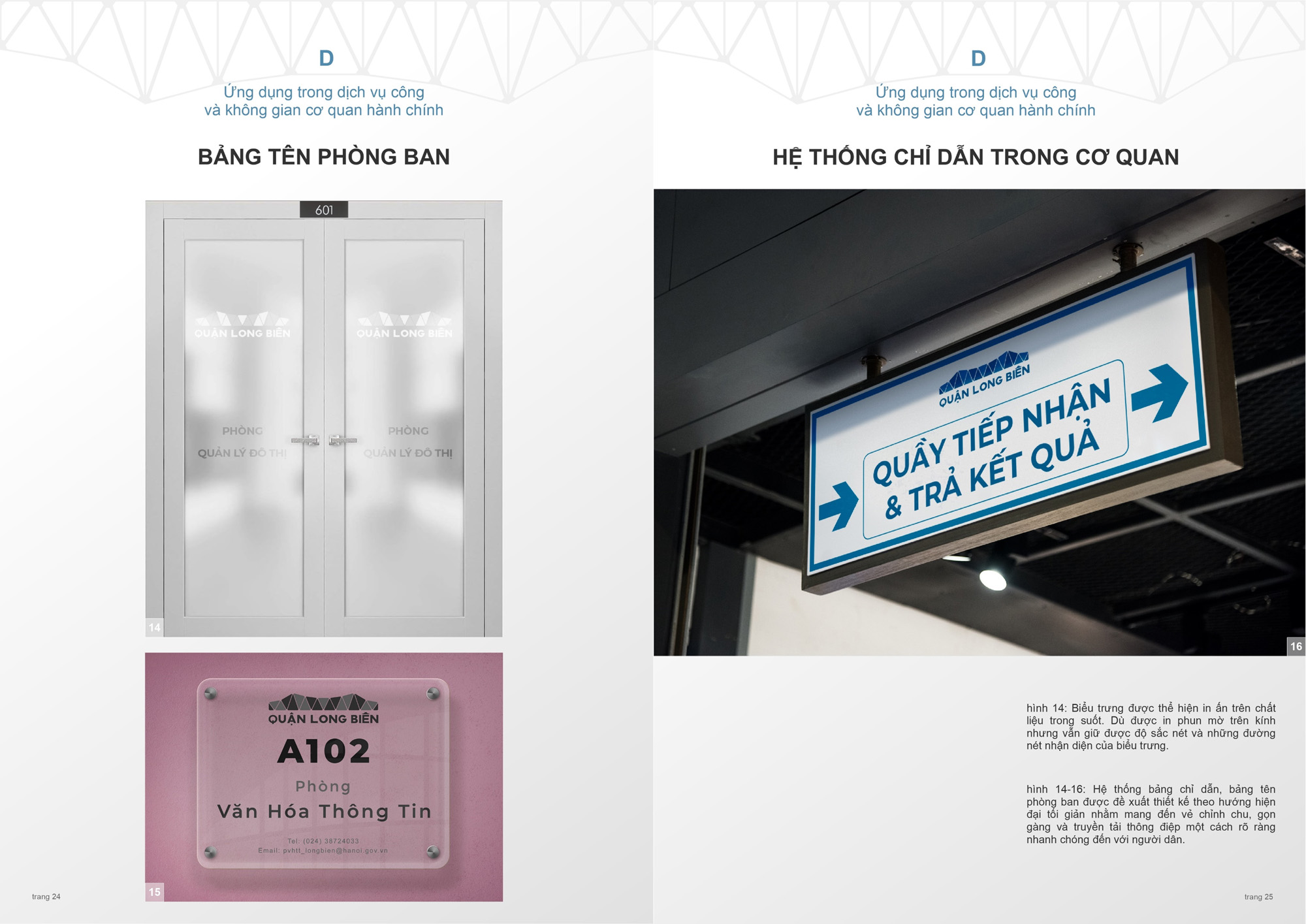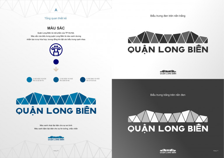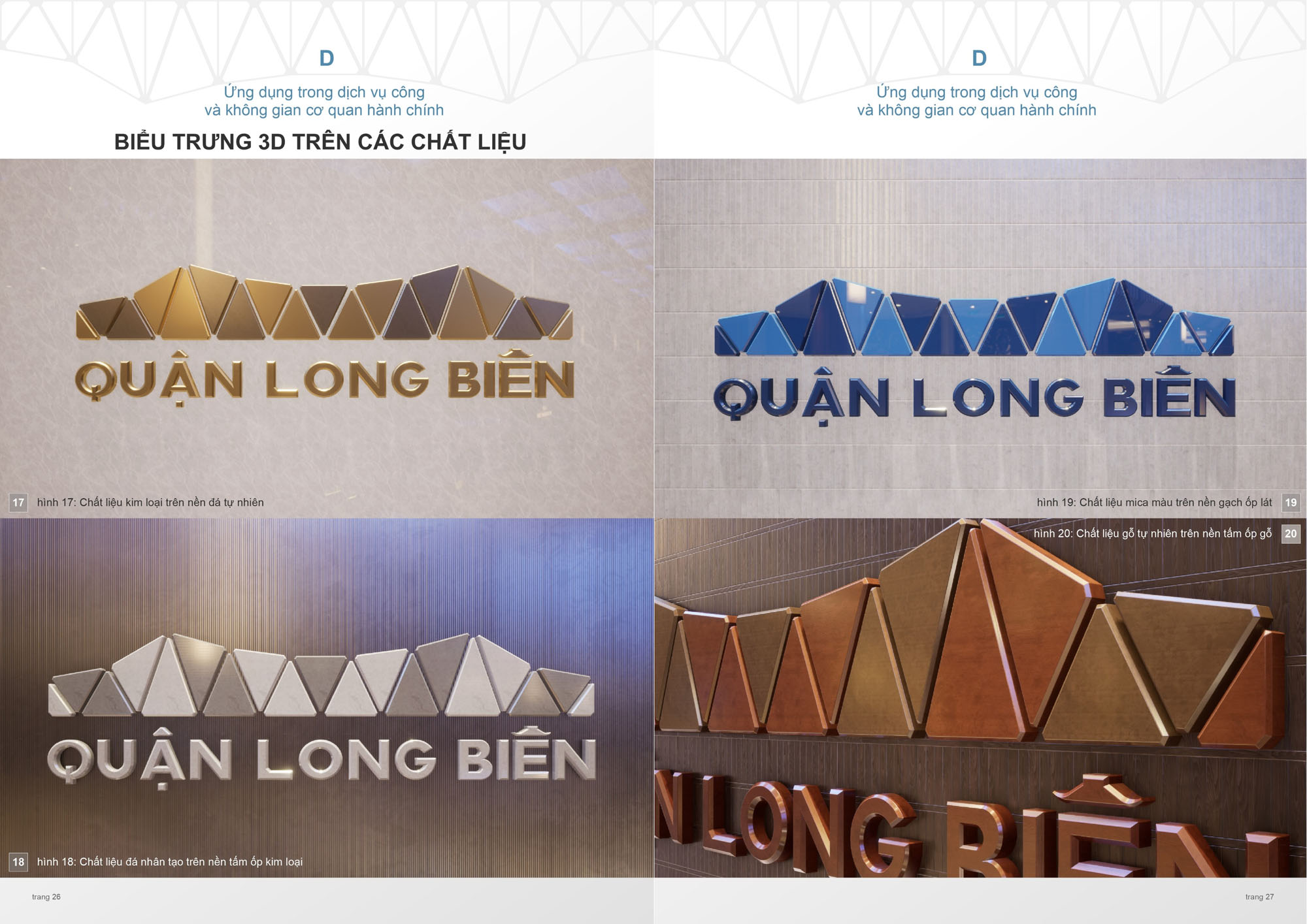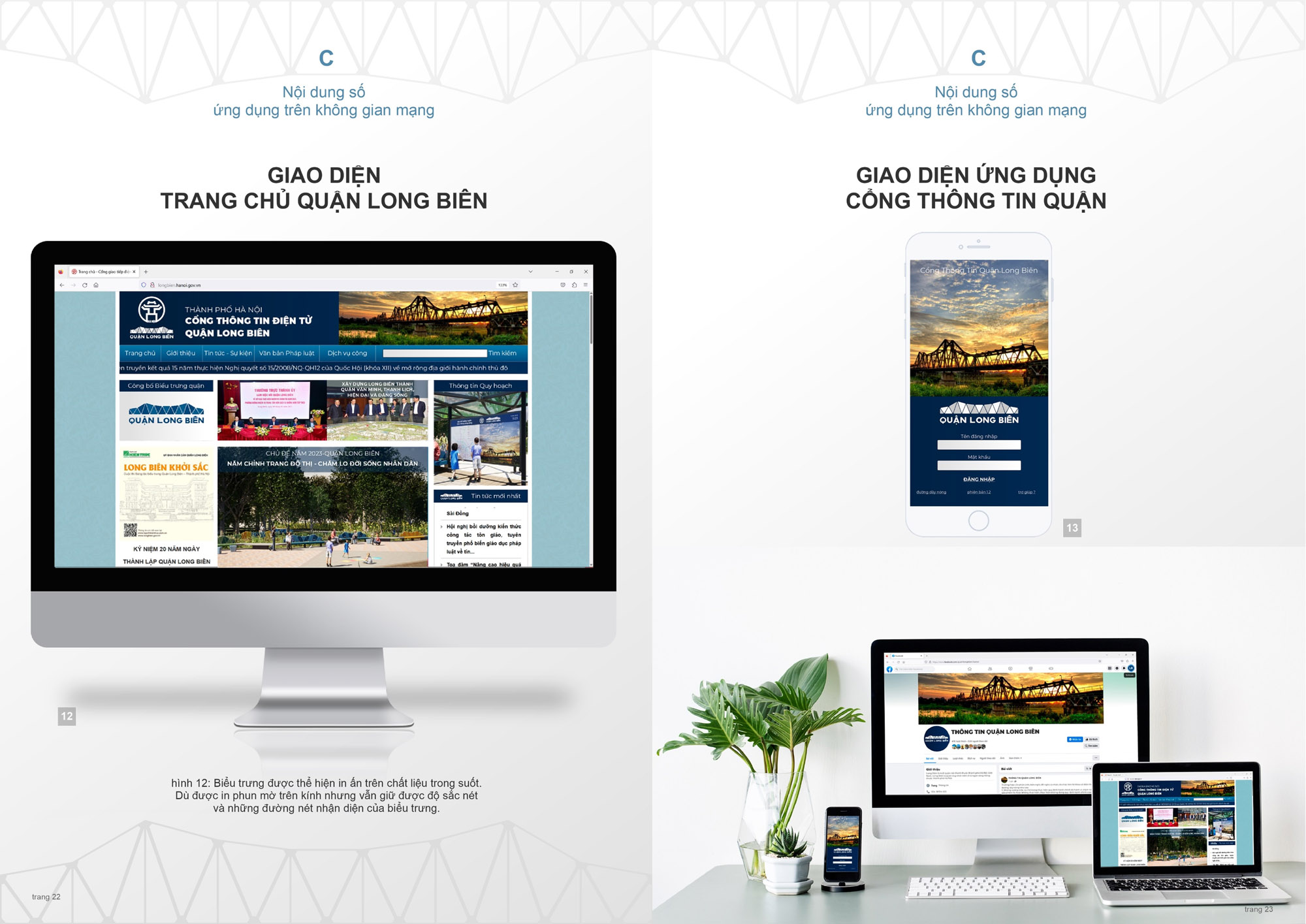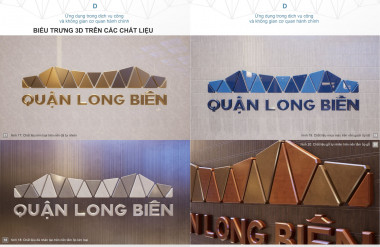 Biểu trưng Quận Long Biên đặt kế cận các biểu trưng khác, dù ở dạng màu hay trắng đen đều giữ được nét nổi bật và thể hiện đặc trưng riêng của quận.