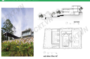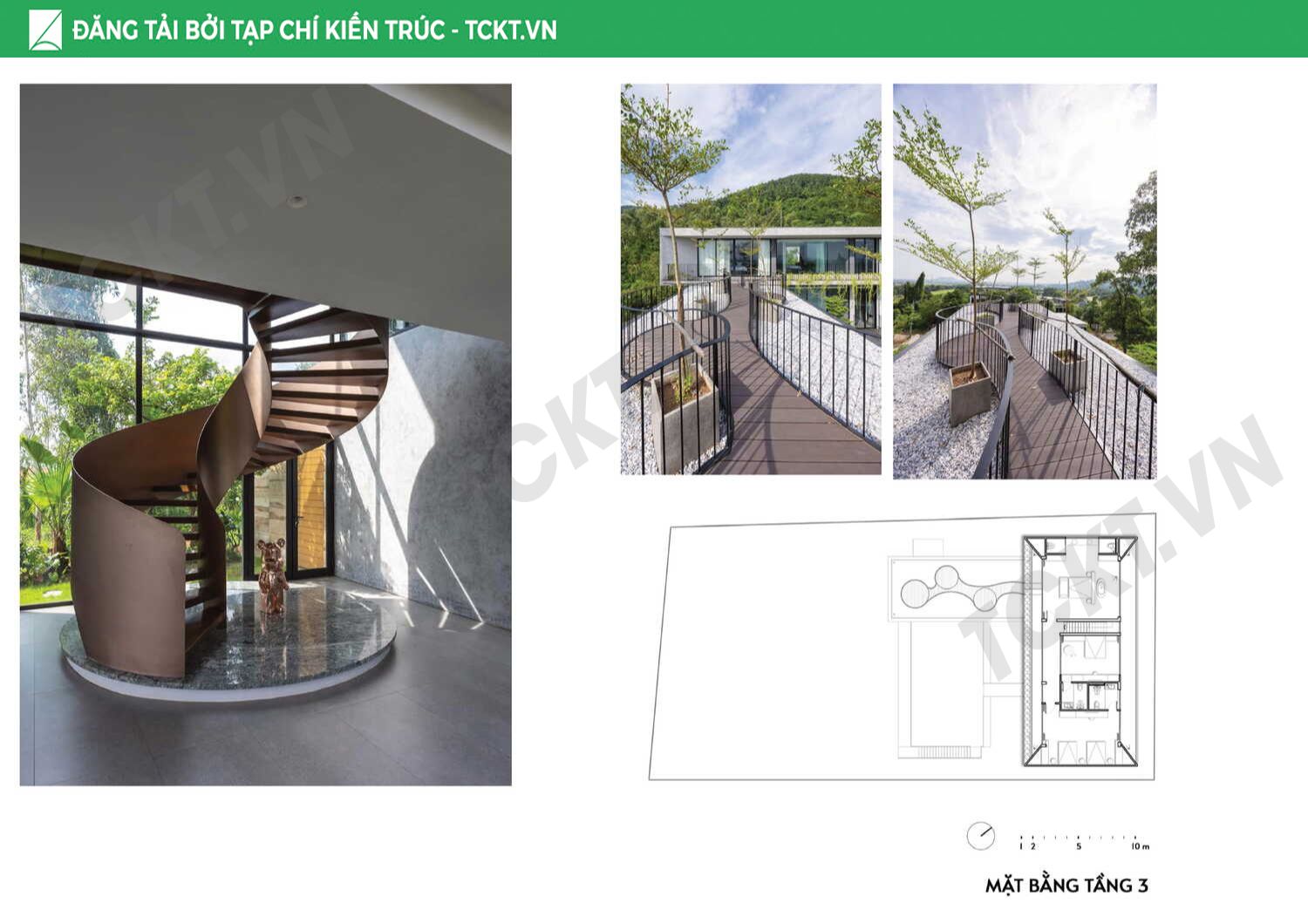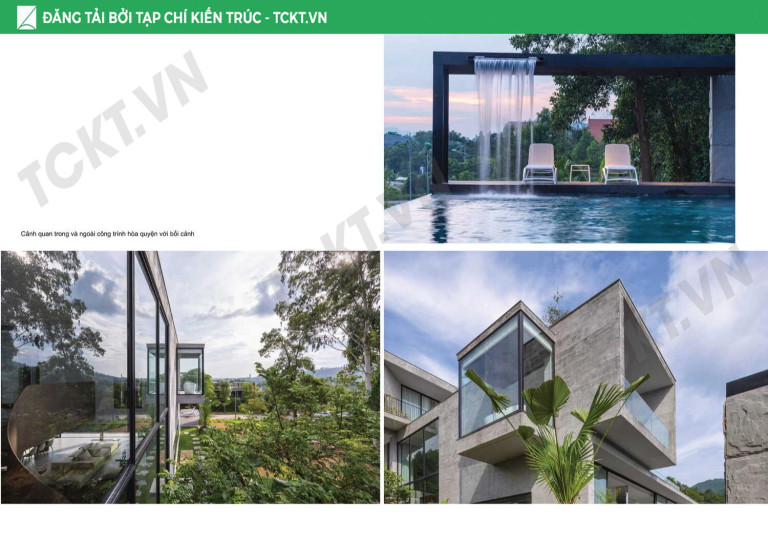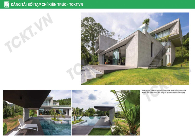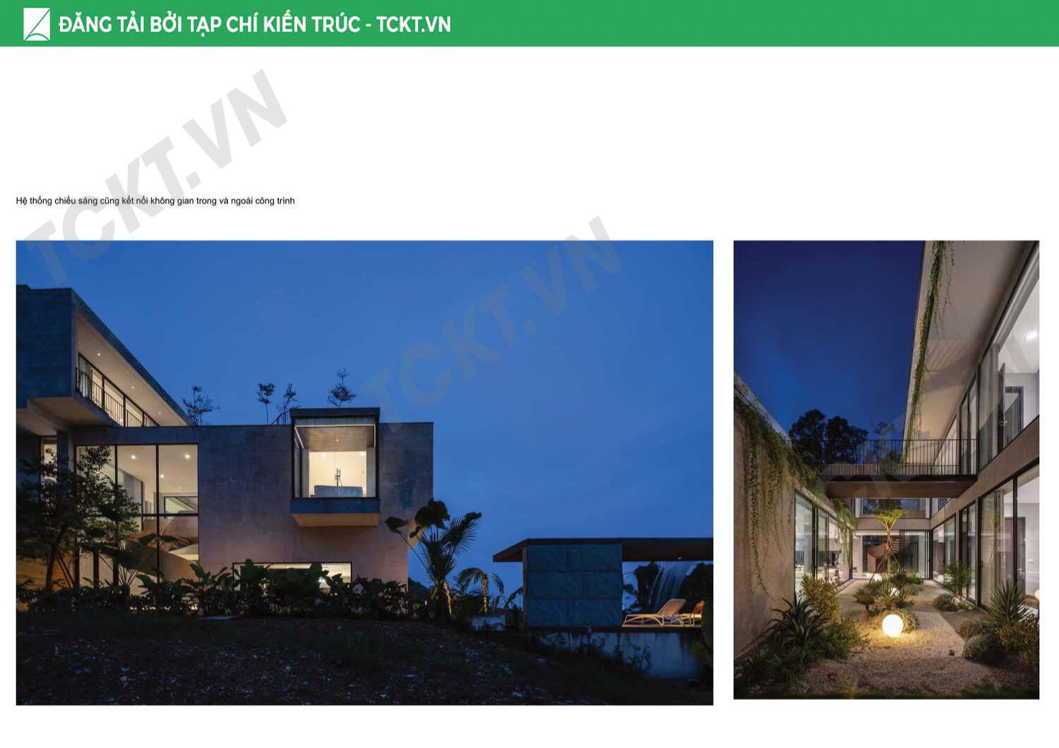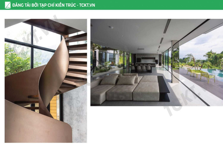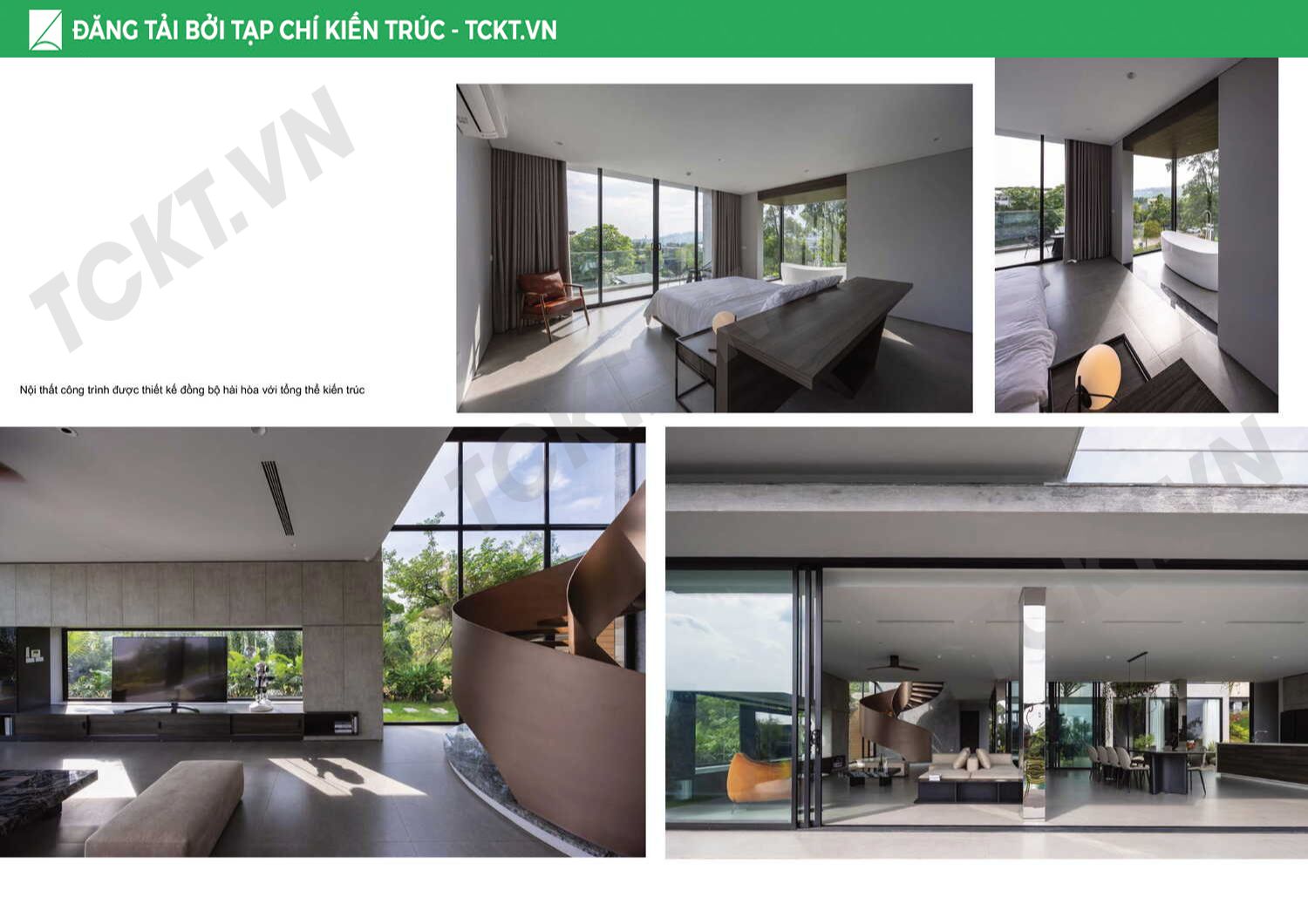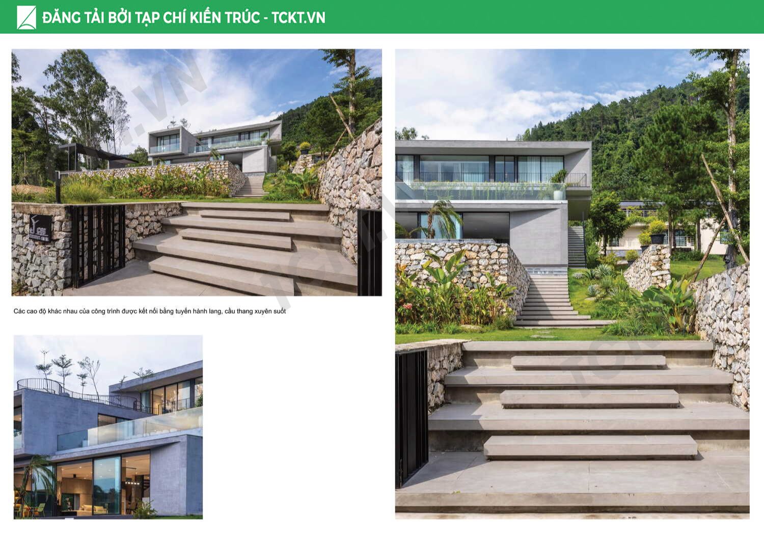Thiết kế không chỉ phản ánh địa hình mà còn nhấn mạnh sự kết nối liên tục giữa không gian trong và ngoài, mang đến một trải nghiệm sống hòa hợp với thiên nhiên. Tổng thể không gian của căn villa được chia thành các khối song song, được xếp chồng lên nhau một cách tinh tế, tạo nên một hình thức kiến trúc độc đáo.