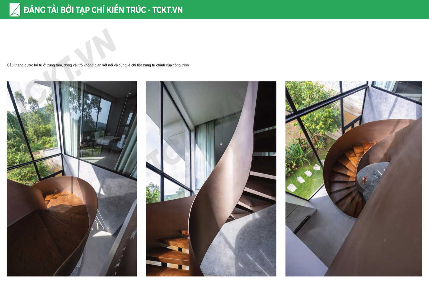 Cuối cùng, thiết kế cầu thang trong và ngoài ngôi nhà được tính toán tỉ mỉ để kết nối các tầng và mái, tạo ra một mạch di chuyển liên tục giữa các không gian. Các cầu thang này không chỉ là phương tiện di chuyển mà còn góp phần tạo nên nhịp điệu cho cấu trúc tổng thể của căn villa.