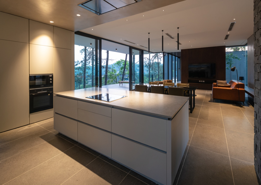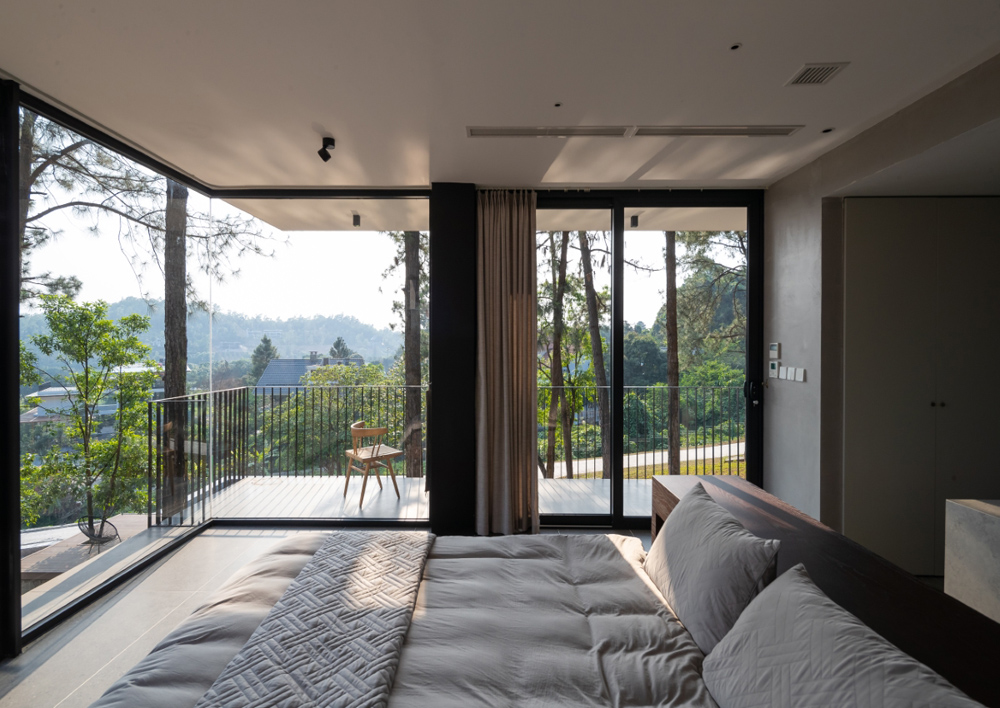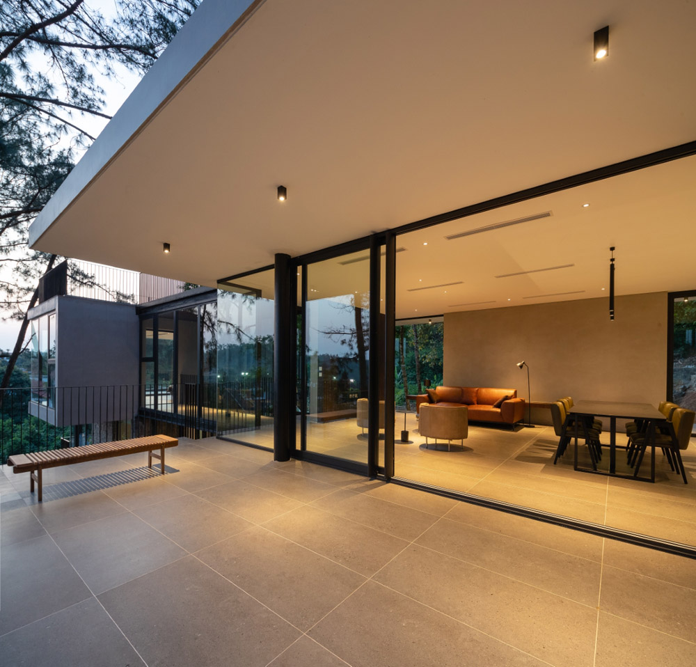 Không gian kiến trúc tối ưu ánh sáng và gió tự nhiên. Giải pháp góc nhà mở khiến không trong trong – ngoài hòa nhập vào nhau.