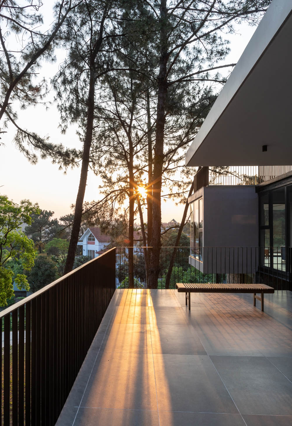 Ban công và mái của công trình được kéo rộng ra cũng nhằm hạn chế việc bức xạ nhiệt, điều hòa khí hậu tự nhiên ảnh hưởng tới công trình.