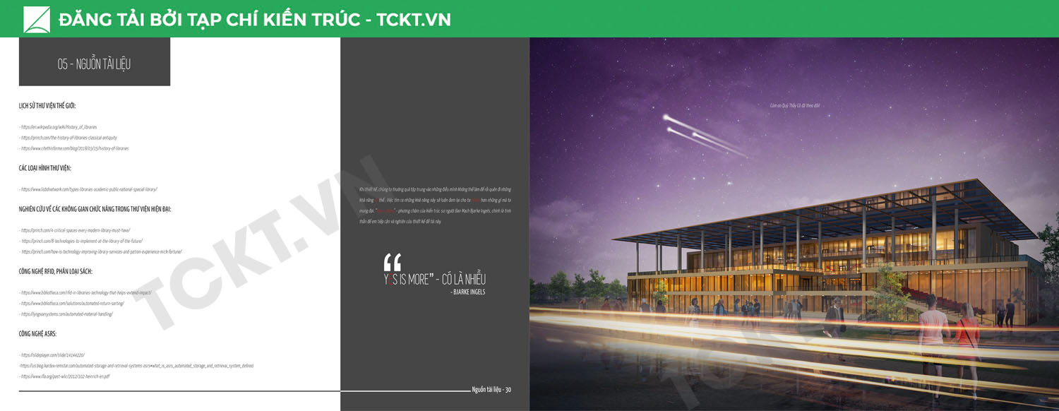 Thư viện không phải là một đề tài mới mẻ trong thiết kế kiến trúc. Tuy nhiên, có lẽ vì sự hạn chế của tài liệu trong nước về lãnh vực này mà các đồ án sinh viên khi thiết kế thư viện đều đang đi theo một lối tư duy đồng nhất (vị trí các khối chức năng, dây chuyền, hình thức quản lý,…). Điều này vô hình chung khiến các giải pháp thiết kế thiếu sự đa dạng và có phần lỗi thời khi so sánh với các đồ án thực tế cùng quy mô của nước bạn.