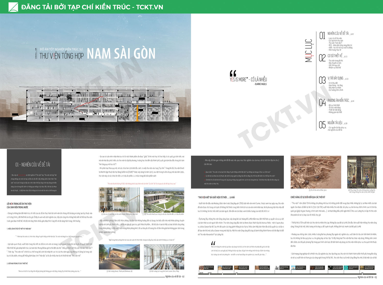 Với tinh thần “Yes Is More” của kiến trúc sư Bjarke Ingels, “Thư viện Tổng hợp Nam Sài Gòn” đã đem đến nhiều hơn những gì ta từng mong đợi (số lượng đầu sách vượt trội, lợi ích về kinh tế, xã hội, đa dạng hoạt động, dịch vụ,…) bắt đầu từ việc ta nói có với những điều ta từng nghĩ là không thể. Tính thực tiễn và cả tính khả thi về mặt chi phí, kinh tế của các giải pháp được đề xuất được chứng minh qua những công trình, nghiên cứu thực tế.