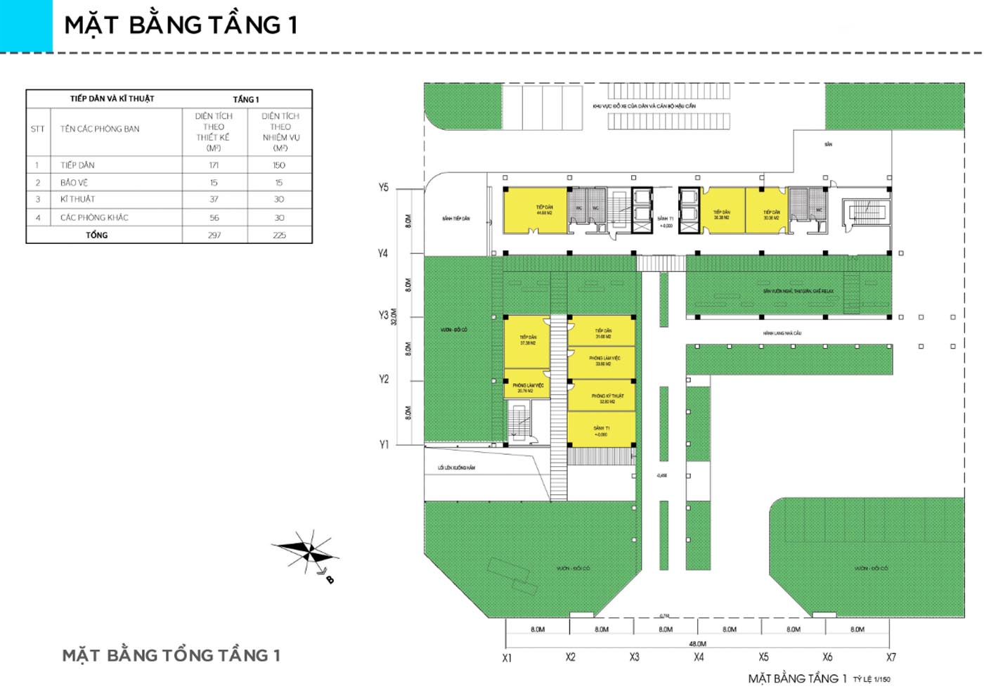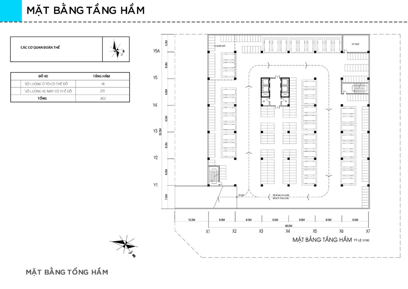 - Tầng hầm đỗ xe cán bộ, nhân viên, khu vực sân bãi để xe của khách;